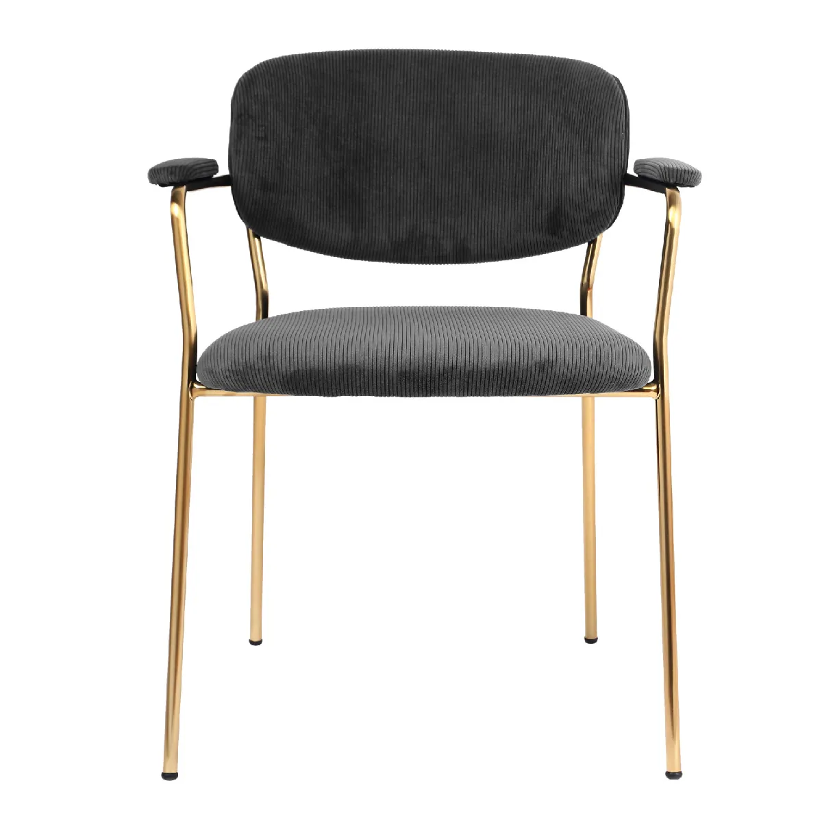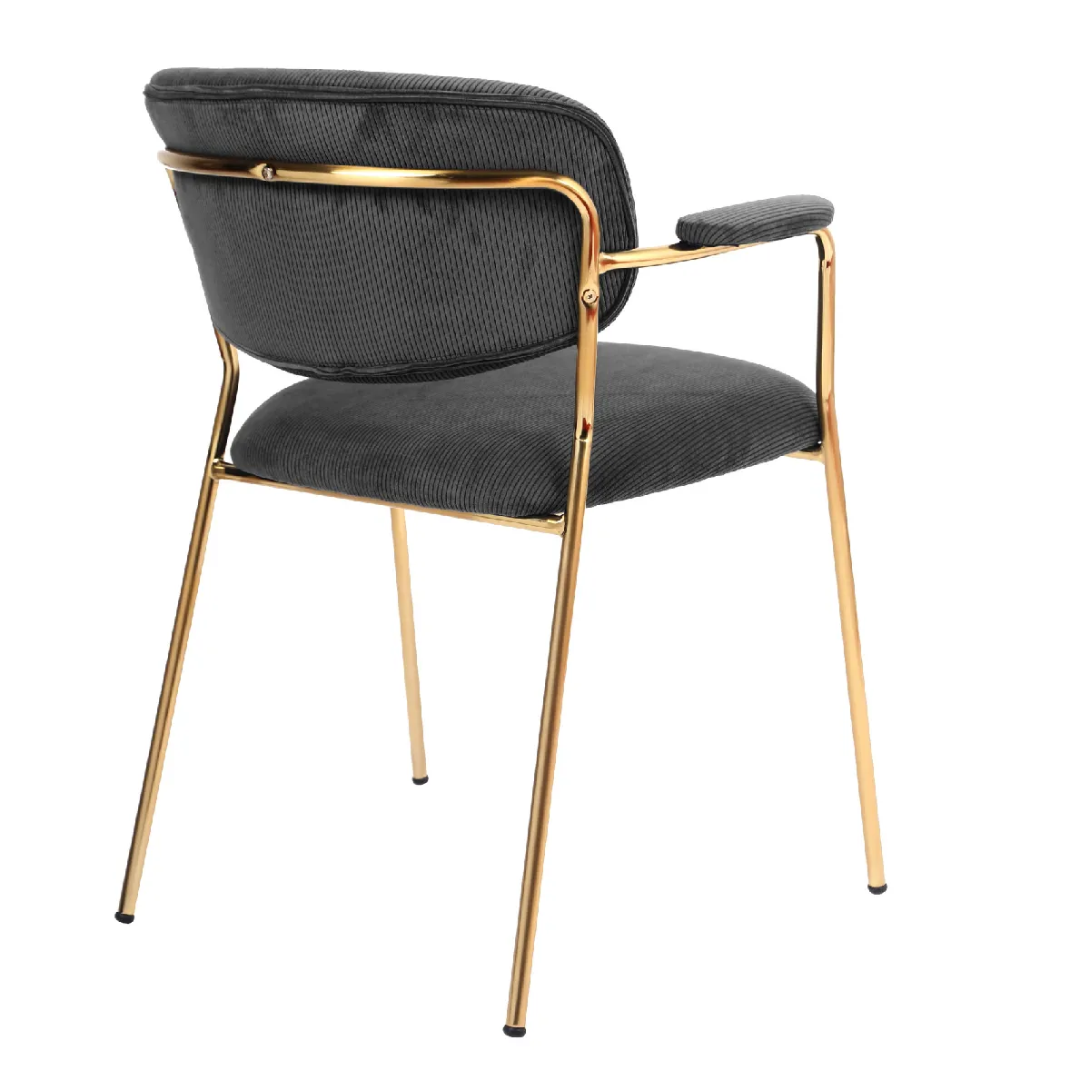 Chaise salle à manger - Tissu cotelé carbone - Pieds métal doré - Confort et chic