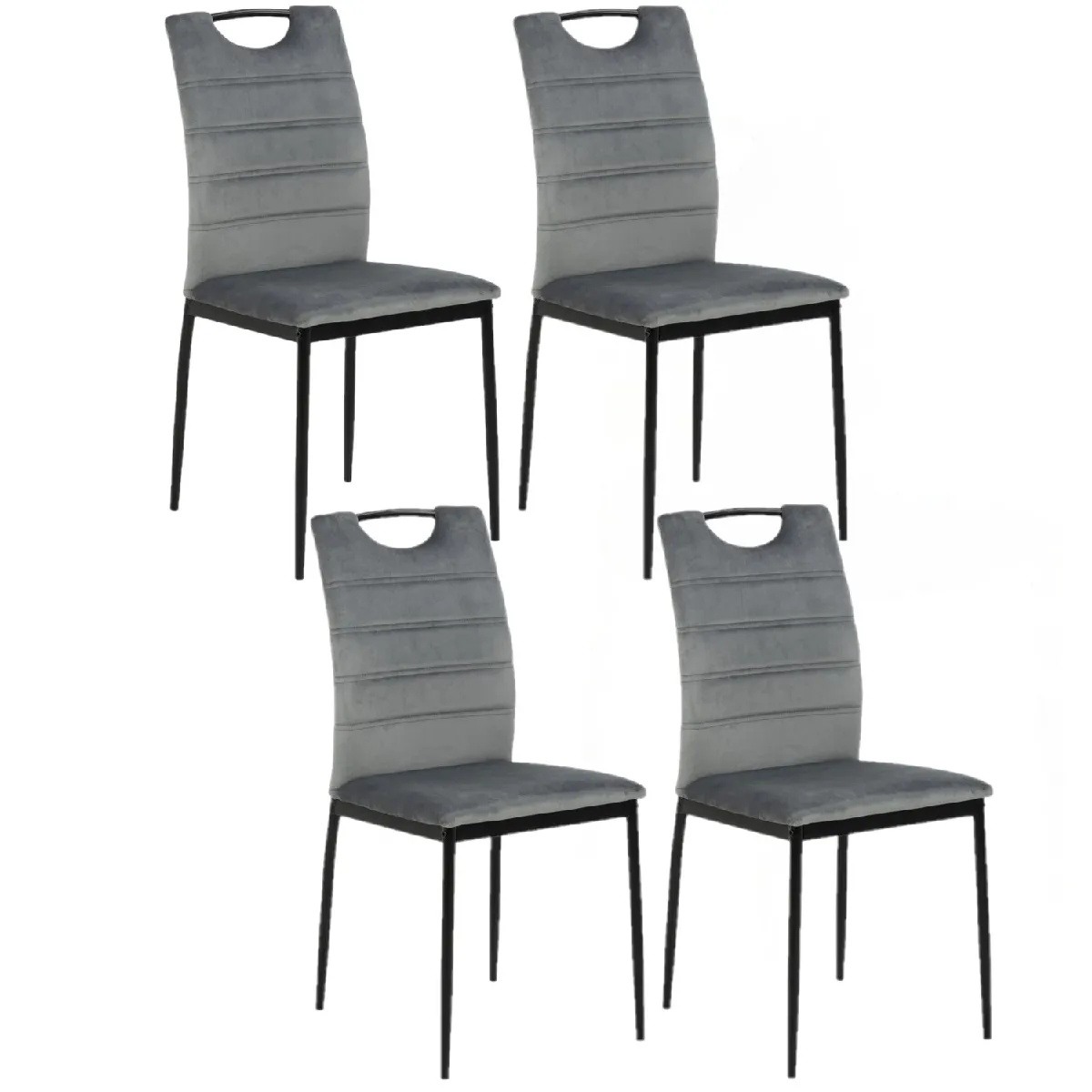 Toilinux - Lot de 4 Chaises de salle à manger effet velours et métal - Gris - Moderne