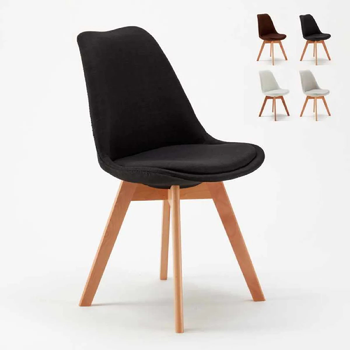 Chaise design scandinave - Polypropylène et bois de hêtre - Assise rembourrée