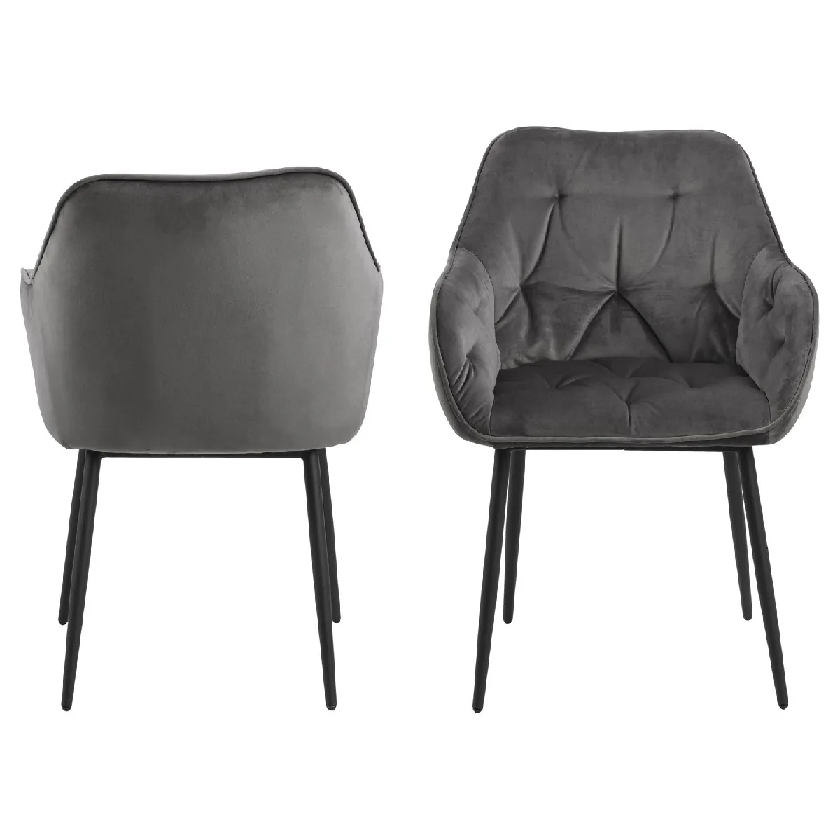 Toilinux - Lot de 2 Chaises de salle à manger avec accoudoisr effet velours - Gris et Noir - Moderne
