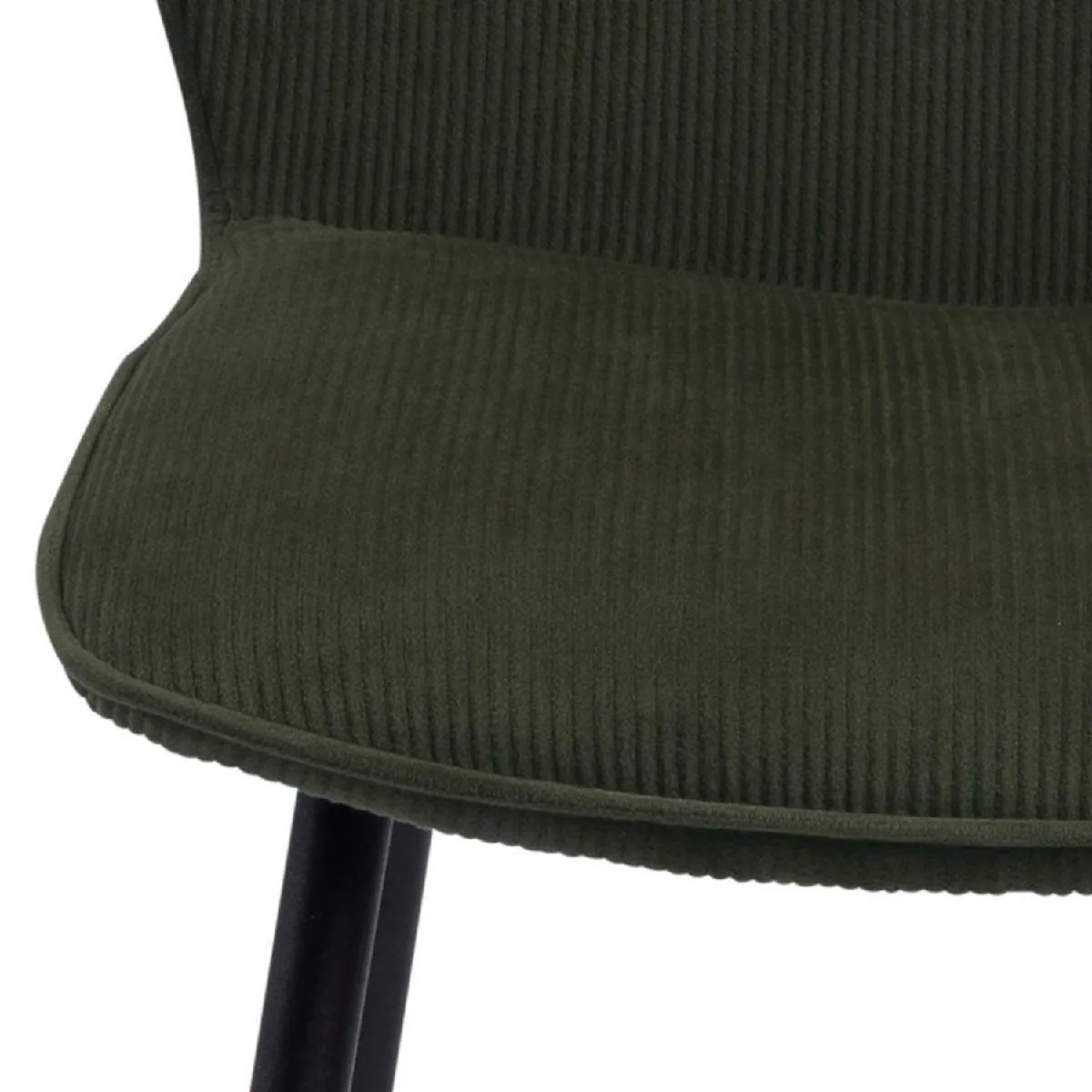 Lot de 2 chaises aux courbes contemporaines, recouvertes d'un doux velours côtelé vert olive rembourré et avec des pieds en métal noir