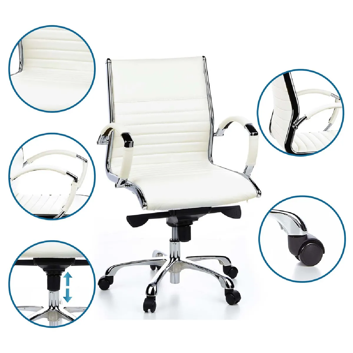 Fauteuil de direction - Cuir crème - Accoudoirs acier - Système Toplift