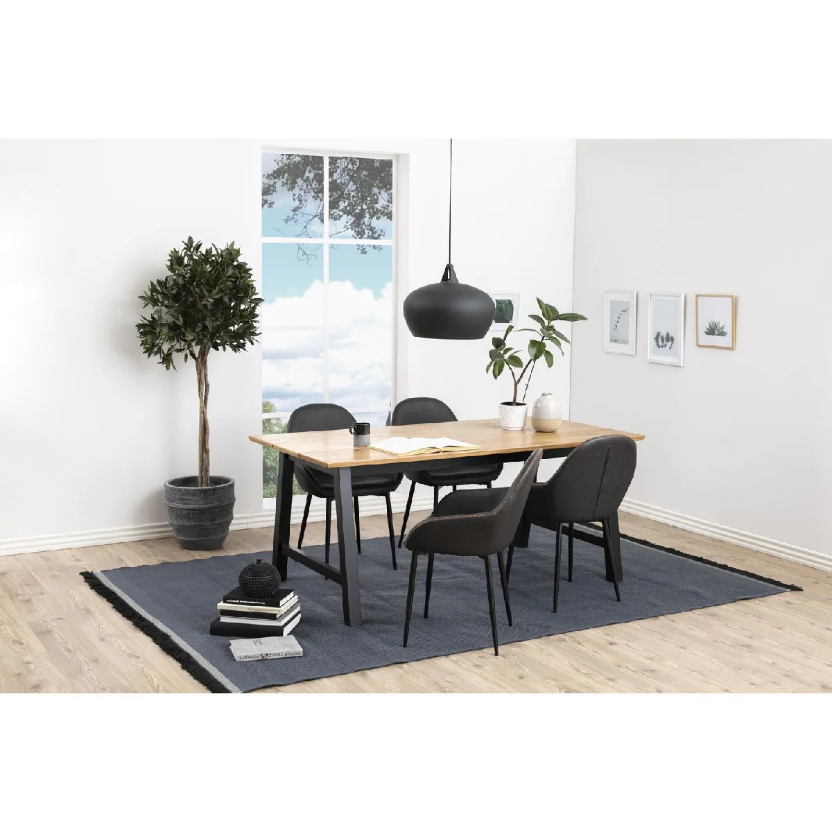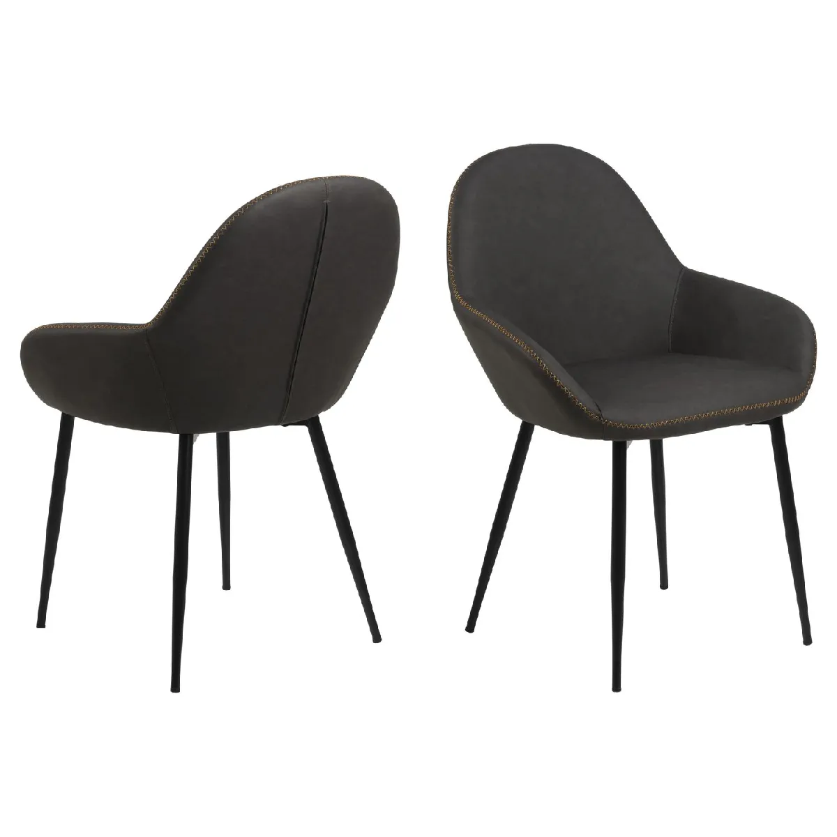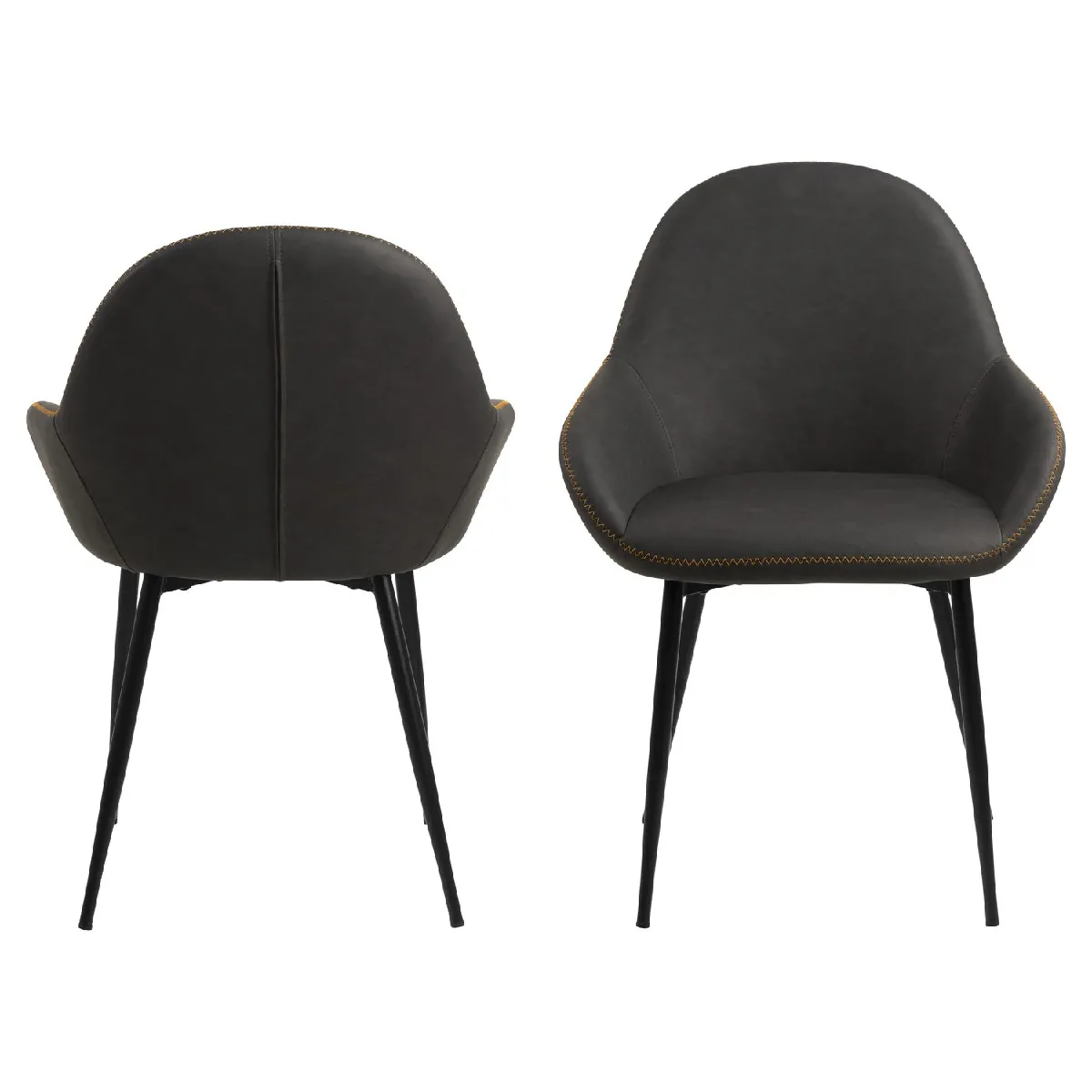 Avec son design élégant, notre chaise Candice sera l'atout confort de votre salle à manger. On aime le détail des coutures marron sur les accoudoirs et le dossier qui contraste avec le tissu en similicuir de l'assise pour un rendu moderne assuré.