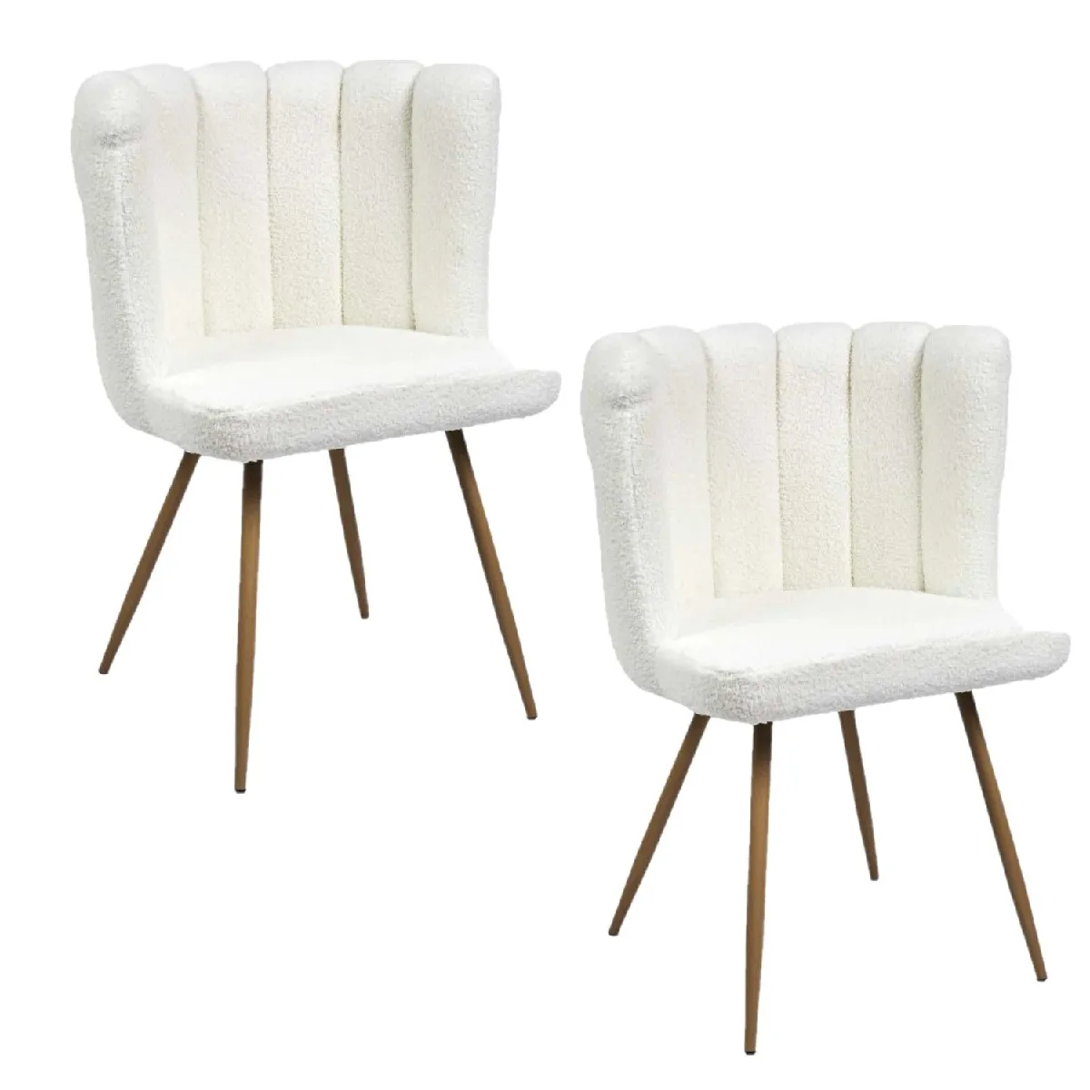 Ajoutez une touche d'élégance et de confort à votre salon avec les chaises Ariel. Leur design moderne, sublimé par l'effet bouclette du revêtement, s'intègre parfaitement dans tout type d'intérieur, qu'il soit contemporain ou plus classique. Ces chaises allient parfaitement style et confort, offrant une assise douillette grâce à leur rembourrage en mousse PU.