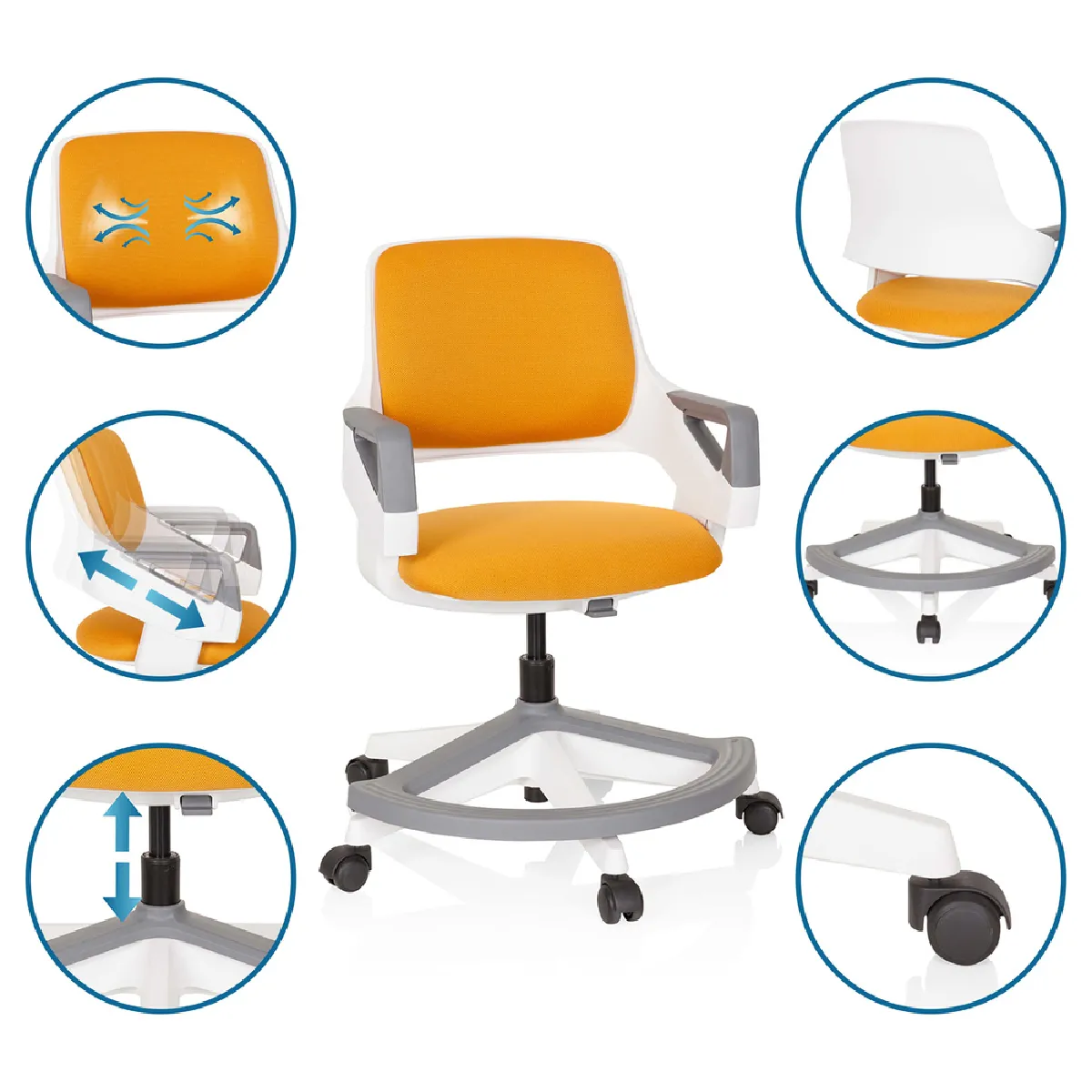 Le siège pivotant à croissance automatique KID FLEX peut être adapté en un rien de temps à la phase de croissance de votre enfant. Avec une simple poignée sous les accoudoirs intégrés au cadre robuste, le dossier peut être déplacé vers le haut et vers l'arrière en même temps. La tapisserie d'ameublement agréable et la couverture en tissu robuste assurent le confort et la longévité élevés. La hauteur du siège est réglable individuellement. Un autre point fort: Le repose-pieds semi-circulaire en gris contrastant est également réglable en hauteur en tournant et en tirant simultanément vers le haut ou en abaissant.