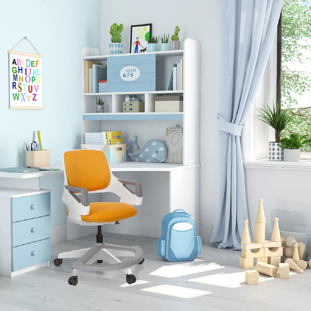 Chaise pivotante enfant - Tissu 3D maille - Cadre blanc - Accoudoirs - Hauteur d'assise réglable