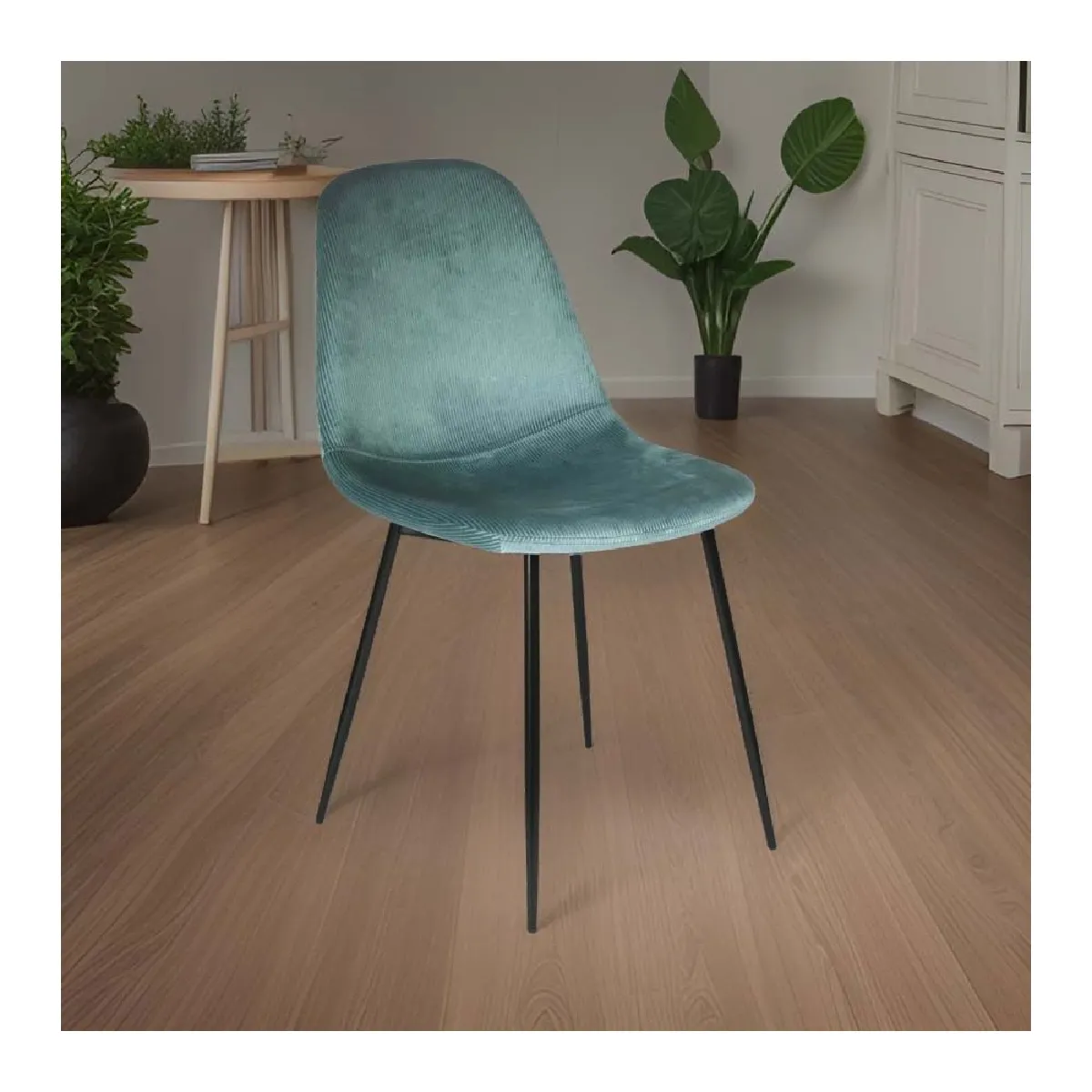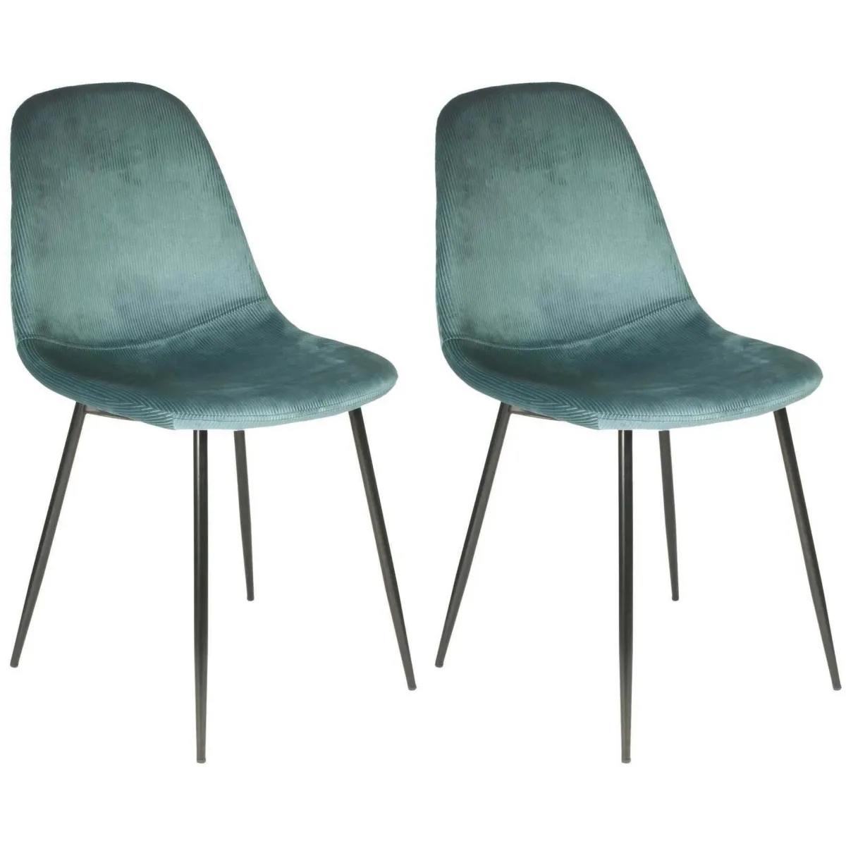 Chaise en velours côtelé - Lot de 2 - Bleu canard - Pieds fer - Hauteur d'assise 48 cm