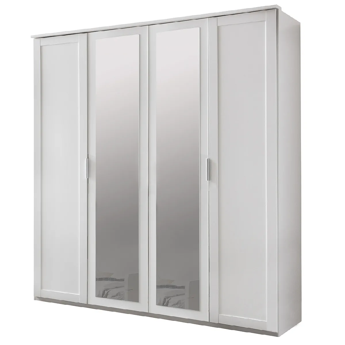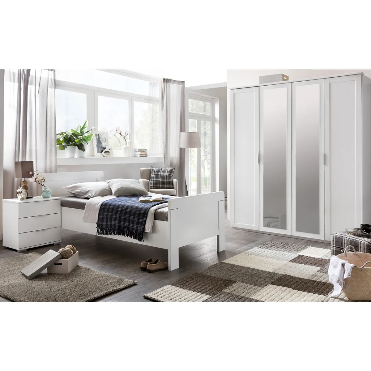 Chambre enfant - Lit compact 90x200 cm - Chevet 3 tiroirs - Armoire 2 miroirs - Blanc