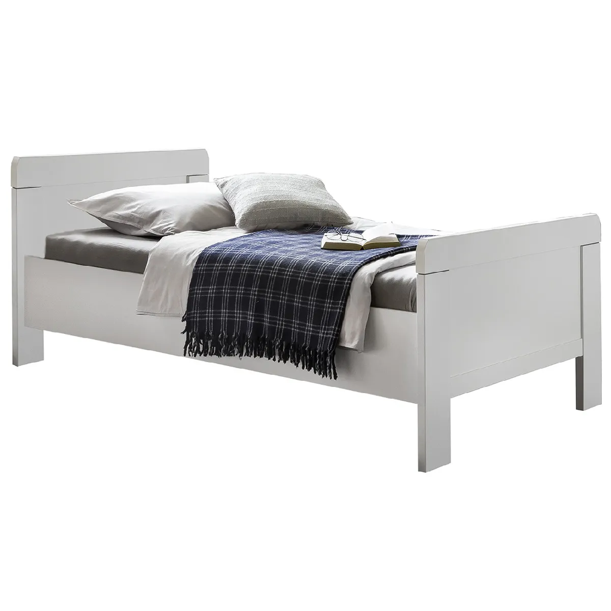 Chambre à coucher enfant en panneaux de particules coloris blanc comprend un lit compact réglable en hauteur de 90x200 cm « sommier et matelas non inclus », table de chevet avec 3 tiroirs coulissants + armoire de 2 miroirs. Livré en Kit.