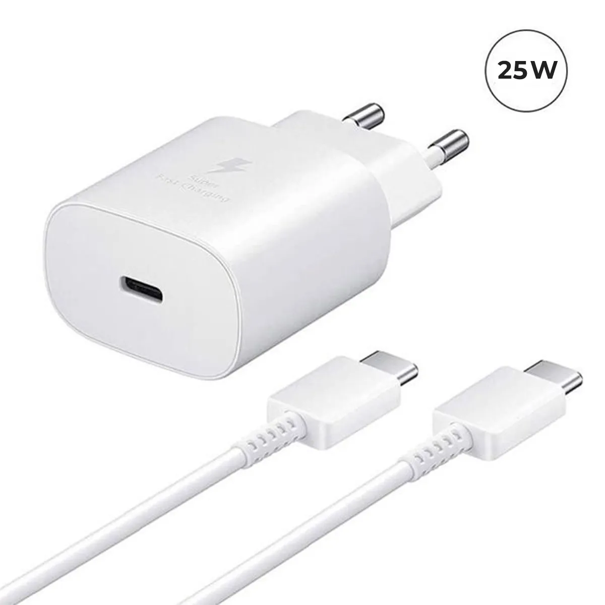 Chargeur rapide 25W USB-C - Câble USB-C vers USB-C - Sécurisé - Blanc
