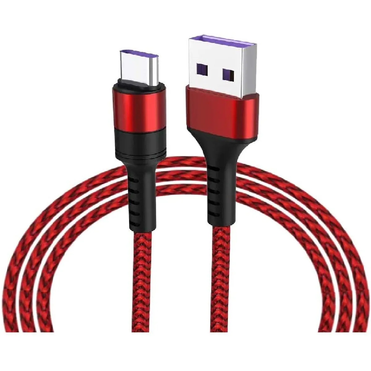 Description : Cable USB / Type-C Fast Charge 3A Nylon Renforce Rouge 1m Pour Samsung A13 / A33 / A53 / S22 / S22 Plus / S22 Ultra Little Boutik®