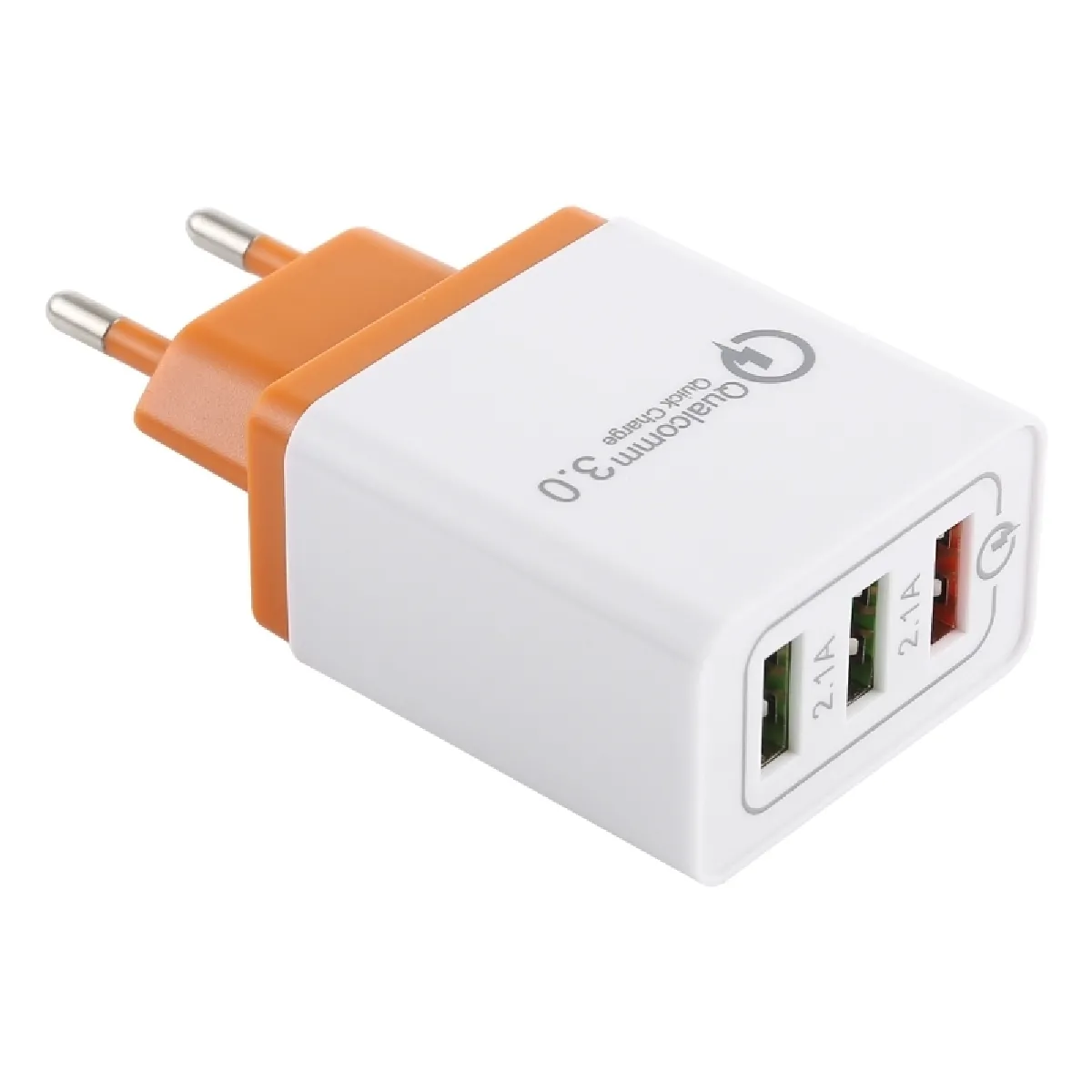 Chargeur 2.1A 3 ports USB rapide de voyage, prise UE (Orange)