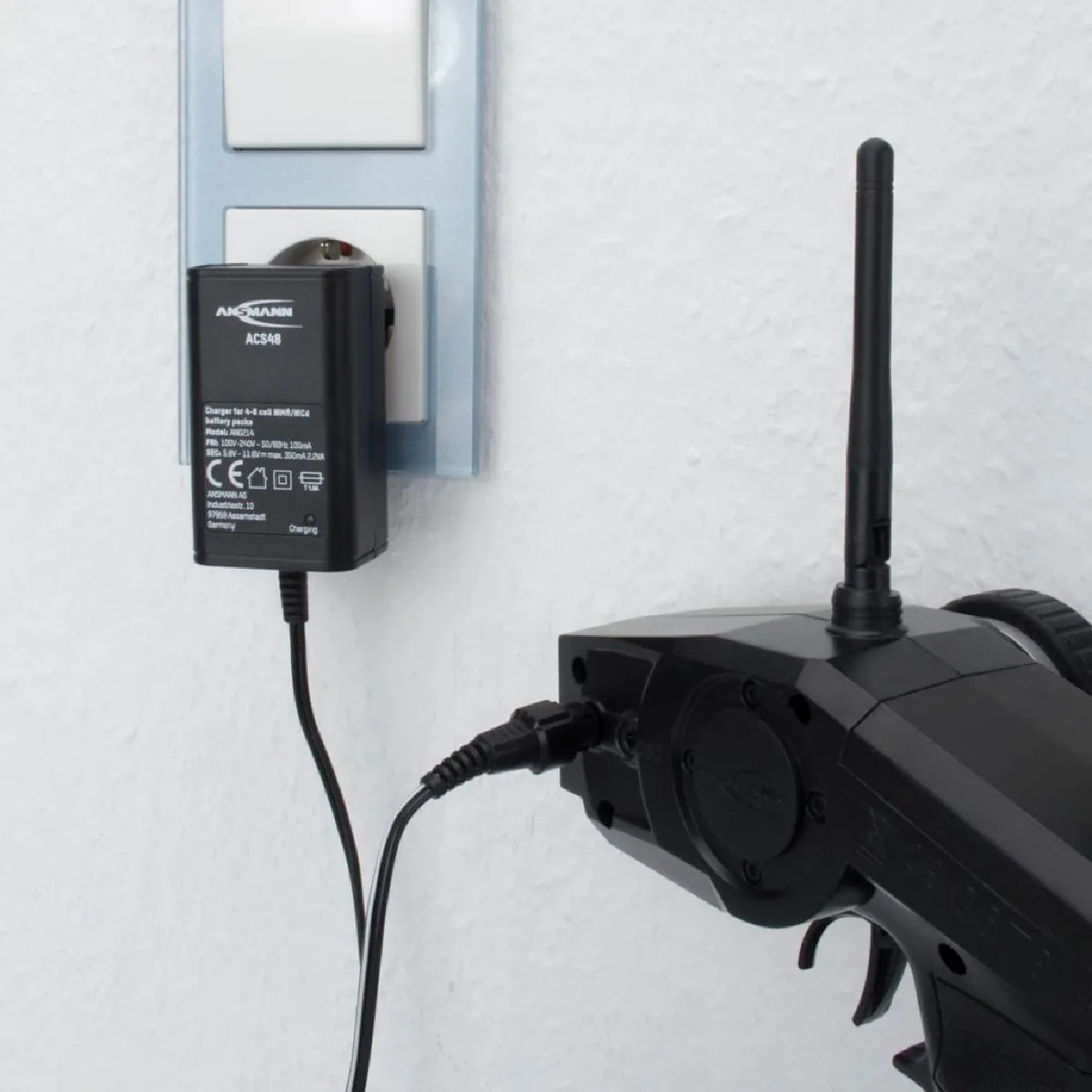 Si vous recherchez un chargeur pour vos bloc-piles NiMH / NiCd, vous ne pouvez jamais vous tromper avec le chargeur de piles ACS 48 de la marque Ansmann. Le voyant LED pratique permet de déterminer si la batterie est chargée ou non. Lorsque la polarité est correcte, le voyant de charge s'allume en rouge et commence à charger. Si le voyant LED clignote en rouge, cela signifie que la batterie a été mal insérée ou court-circuitée. Ce chargeur de batterie est livré avec un câble adaptateur avec prise Tamiya et 8 connecteurs de sortie différents. Le chargeur dispose de fonctions de protection contre les courts-circuits et la polarité inverse et peut être utilisé partout dans le monde grâce à l'alimentation à large plage (100 à 240 V ~ / 50 à 60 Hz).