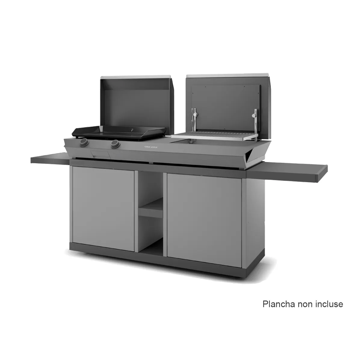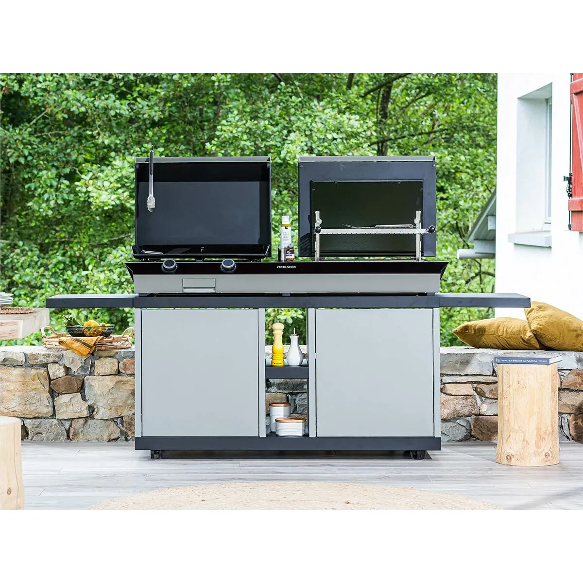 Cette table extérieure est spécifiquement conçue pour recevoir le COMBI G NG de Forge Adour. Elle crée un lieu unique où vous pouvez cuisiner à la plancha ou faire un barbecue !