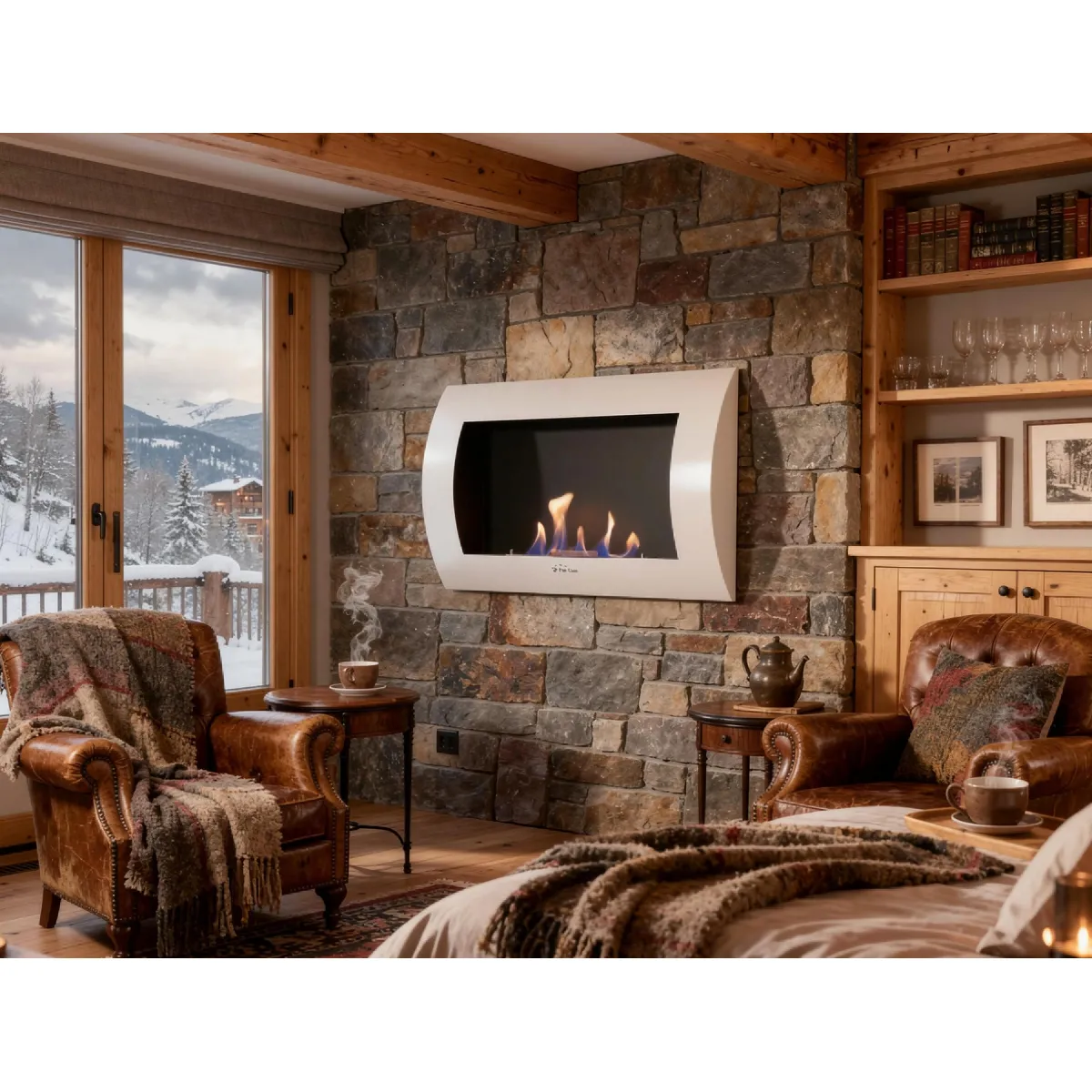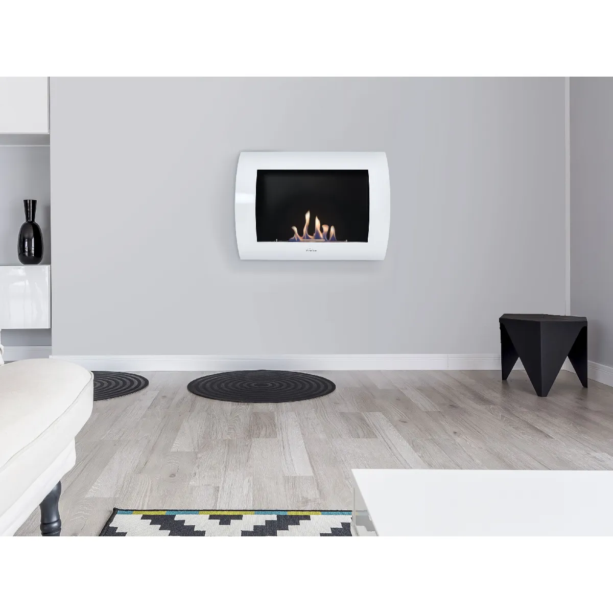 Cheminée à l'éthanol - Design incurvé - Acier laqué - Réservoir 0,8L - Puissance 1,5KW