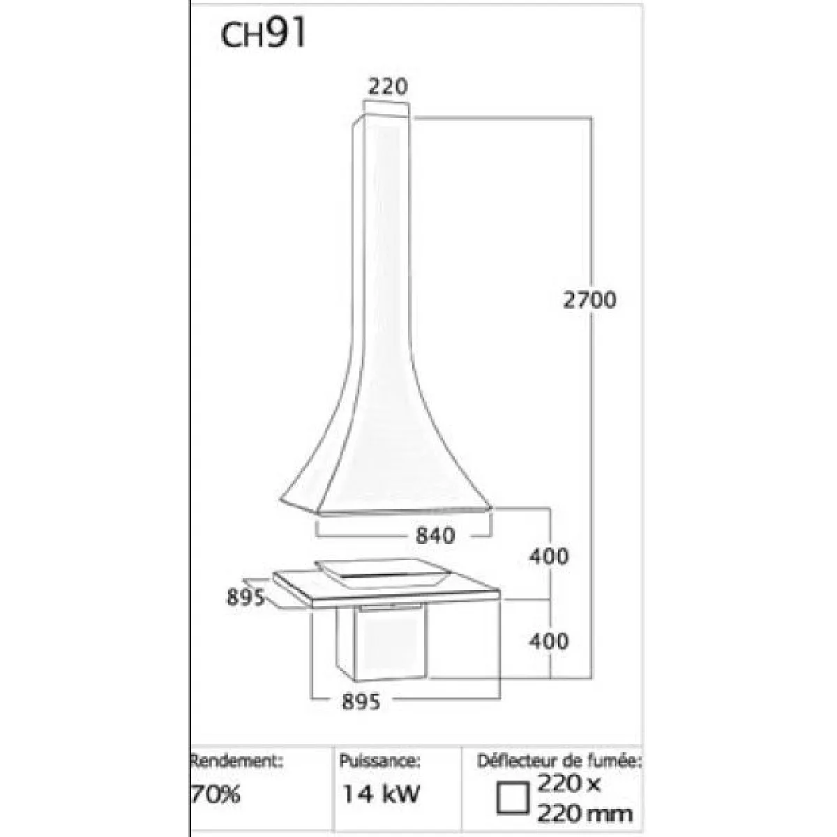 Cheminée centrale à foyer ouvert - Bois - Acier double paroi - 14 kW - Design Espagne