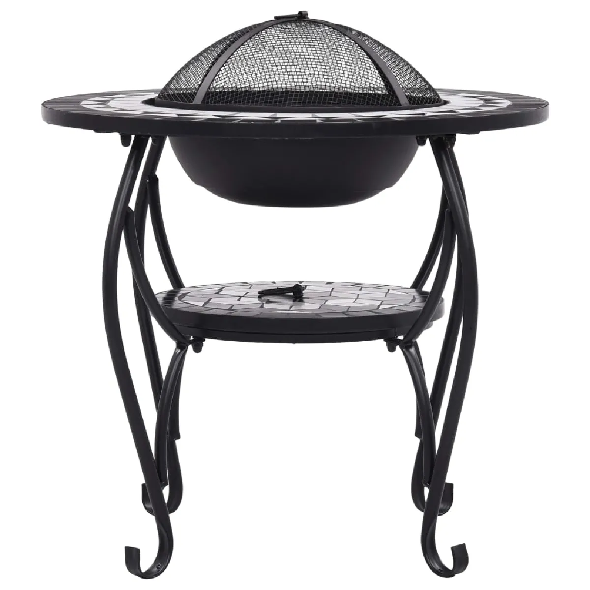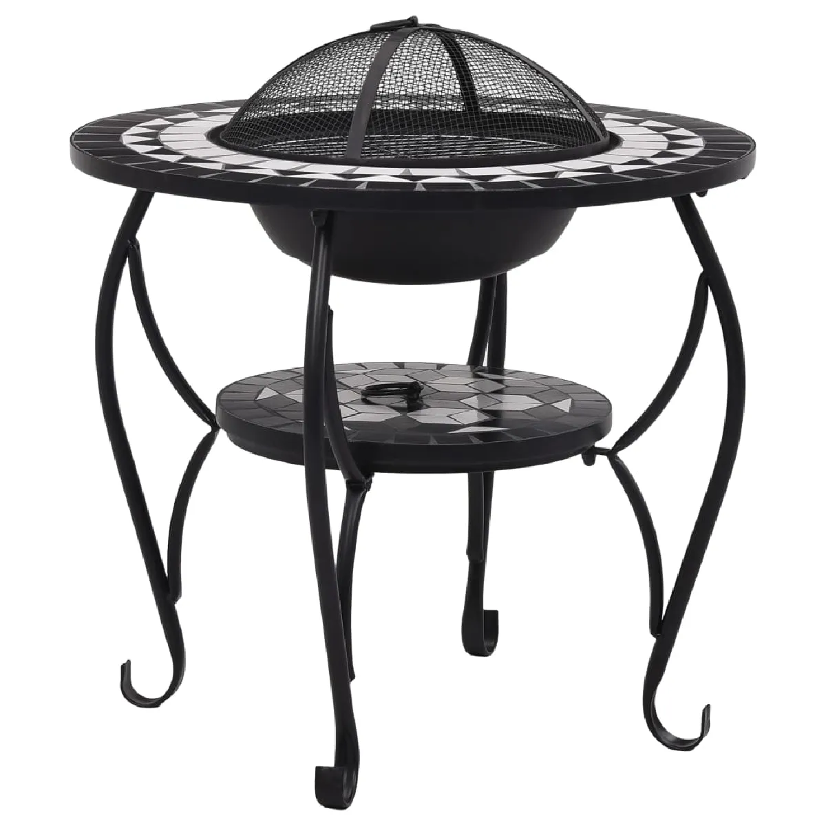Table de foyer - Acier et céramique - 68x60 cm - Inclus tisonnier et couvercle en maille