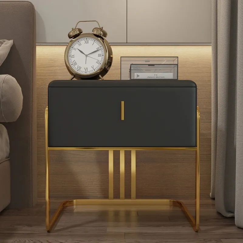 Le tiroir aide à maintenir un environnement ordonné en recevant livres, magazines, cosmétiques ou papiers. L'ensemble, à structure stable à poser, convient à une chambre adulte comme à un salon pour un usage polyvalent. La finition noire met en relief les détails métalliques dorés, tandis que la façade avec poignée géométrique assure une ouverture simple et rapide. Montage requis pour assembler les éléments et obtenir un résultat homogène et durable.