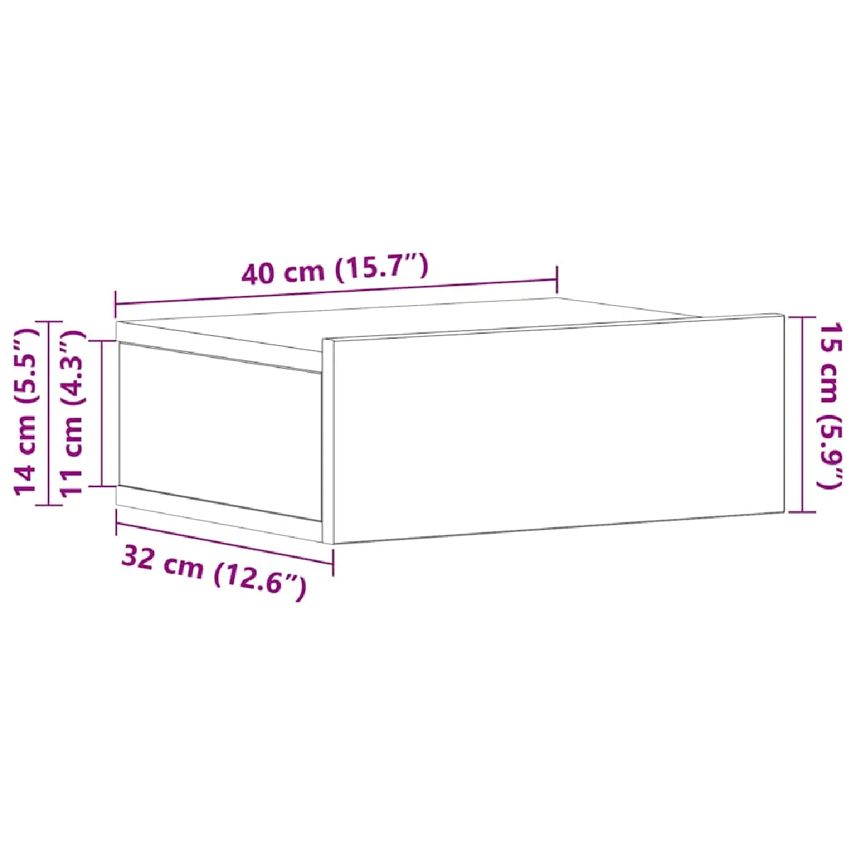 Table de chevet murale compacte - Bois d'ingénierie - Dimensions 40 x 30 x 15 cm