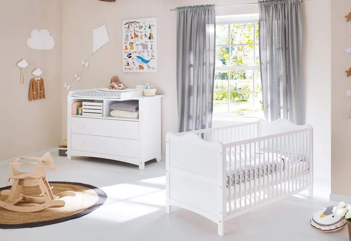 Le large plateau offre une véritable zone de change fonctionnelle et sécurisée adaptée au quotidien des jeunes parents. Grâce au plan à langer amovible et repositionnable, l'ensemble s'adapte à l'aménagement de la pièce et évolue en meuble bas une fois la période de change terminée. La structure en bois au style moderne s'intègre dans de nombreuses ambiances. Les dimensions généreuses 130 x 77 x 101 cm permettent d'organiser les essentiels à portée de main, tandis que la charge maximale de 15 kg convient aux besoins des premières années. Les boutons de meubles en blanc, rose et menthe offrent une touche personnalisable.