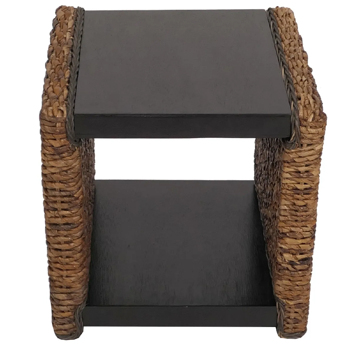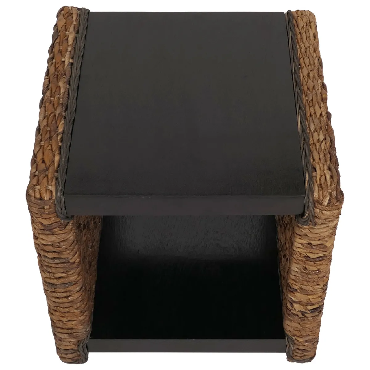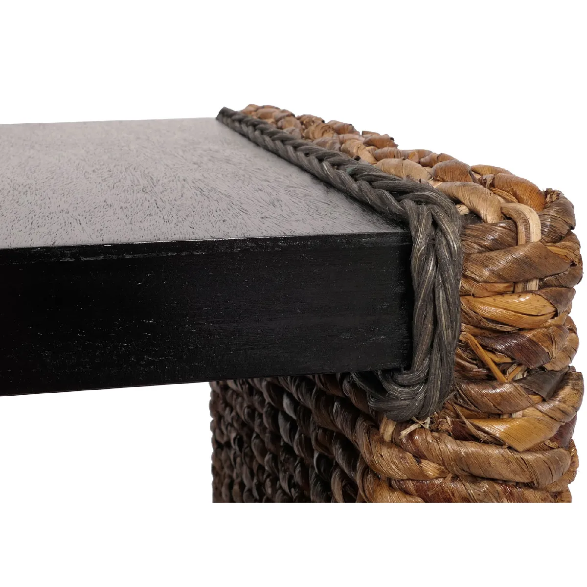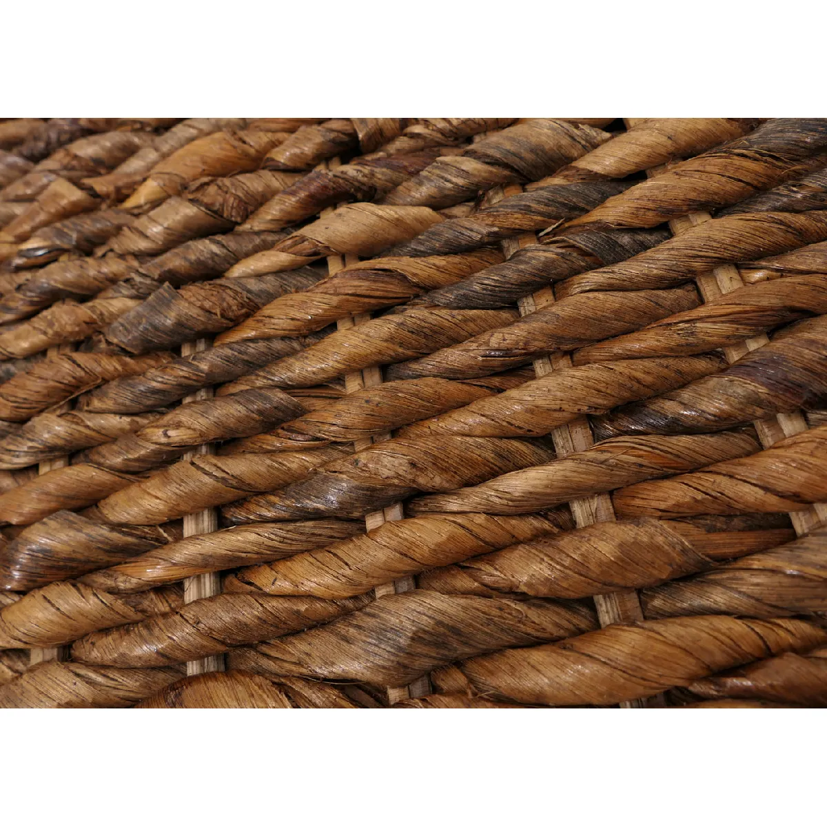 La conception en feuilles de bananier tressées à l'aspect naturel confère une présence chaleureuse et une bonne tenue. Le plateau est vissé pour renforcer la stabilité, pratique pour poser une boisson, une lampe ou un vide-poches. Le volume interne offre une niche d'environ 34 cm de hauteur, utile pour ranger un plaid fin, quelques magazines ou des accessoires. Les dimensions d'environ 49 x 49 cm limitent l'encombrement tout en offrant un plateau d'environ 36 x 47 cm pour les usages courants.
