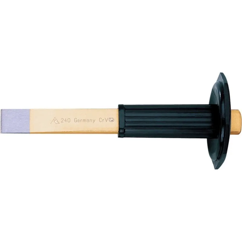 Oui, le burin est livré avec un protège-main rainuré pour une meilleure tenue et une protection supplémentaire lors des frappes.