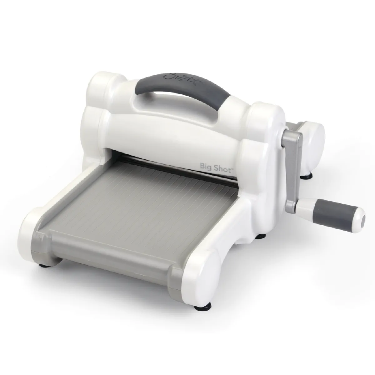 La Big Shot Sizzix est une machine à découper et à embosser. C'est une machine bien connue des amatrices de scrabooking. Elle s'utilise avec de nombreuses matières (papier, feutrine, plastique fou, etc.). La machine Big Shot est une machine stable qui permet de découper et d'embosser de grands formats (jusqu'à 15 cm). Pour l'utiliser, il suffit de faire un sandwich : plaque transparente dies et papier plaque transparente. Reste ensuite à faire tourner la manivelle pour faire passer le tout dans la Big Shot !