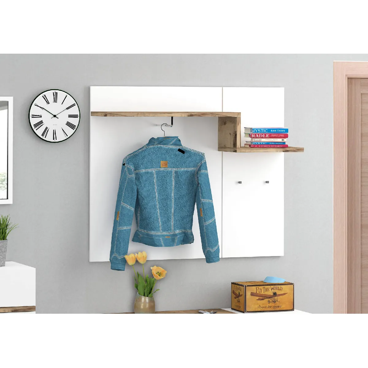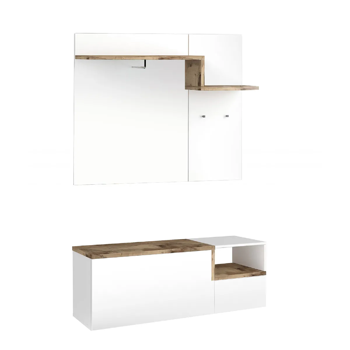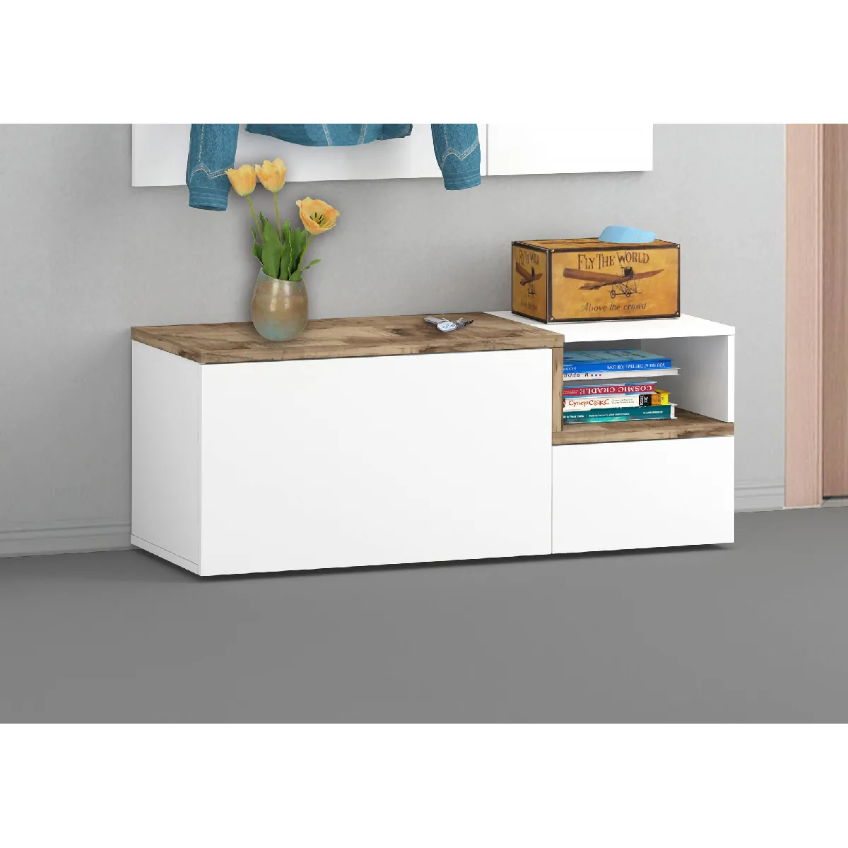 MOBILIER D'ENTRÉE: Élégant meuble d'entrée bas pour petites pièces avec deux portes et étagères internes, en blanc avec des détails de couleur poire - Moderne et innovant, parfait pour décorer des environnements avec des besoins d'espace. STRUCTURE ET UTILISATION : La structure du produit est entièrement de couleur blanc brillant avec des détails de couleur poire - Ce meuble se compose de deux portes, dont une à charnière et un abattant : ce dernier peut être utilisé confortablement comme étagère à chaussures - L'étagère supérieure pour compléter la structure elle vous permettra de placer vos objets pour les avoir toujours à portée de main. PRATIQUE ET INNOVANT: Son design moderne et élégant rend ce meuble parfait pour être placé dans un environnement moderne et lumineux, dans n'importe quelle pièce de votre appartement, du hall à la chambre: c'est le produit idéal pour ceux qui recherchent un espace fonctionnel- garde-robe économe pour votre maison - La couleur blanche et poire est très moderne et s'adapte en même temps facilement à tout type d'environnement. 100% MADE IN ITALY: La production 100% italienne garantit fiabilité, résistance, confort et durabilité dans le temps l'attention portée aux processus de production, le choix des matières premières de qualité et le souci du détail font de ce produit une fabrication noble. CARACTÉRISTIQUES TECHNIQUES : Fabriqué entièrement en stratifié, il résiste aux chocs et aux rayures, et est durable dans le temps - Nettoyage rapide et facile grâce à la matière dont il est fait - Livré démonté avec kit et livret d'instructions de montage - Soin et attention particulière à l'emballage , résistant et adapté au transport - Dimensions en cm : 120x40h54