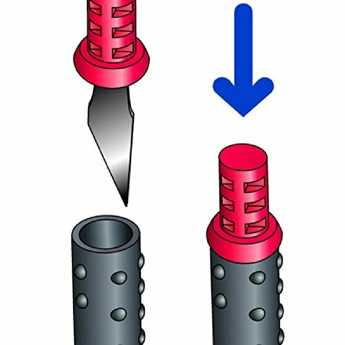 Embout avec lame intégrée : les lames se changent sans manipulation directe pour une sécurité optimale.