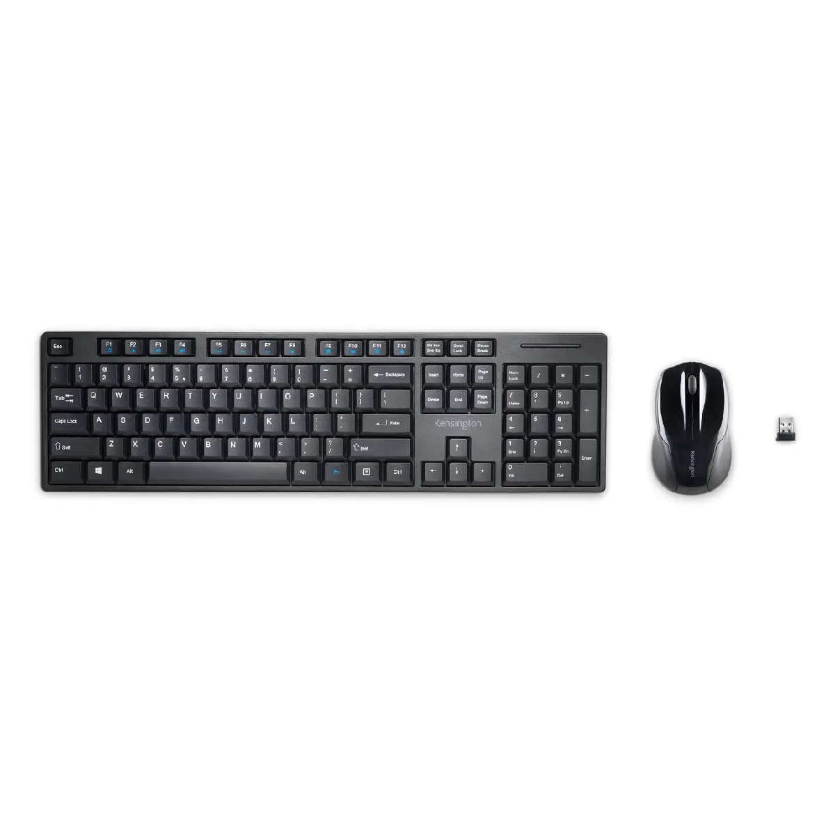 Kensington Pro Fit. Facteur de forme du clavier: Taille réelle (100 %). Style de clavier: Droit. Interface de l'appareil: RF sans fil, Disposition des touches du clavier: QWERTY, Utilisation recommandée: Universel. Couleur du produit: Noir. Souris incluse