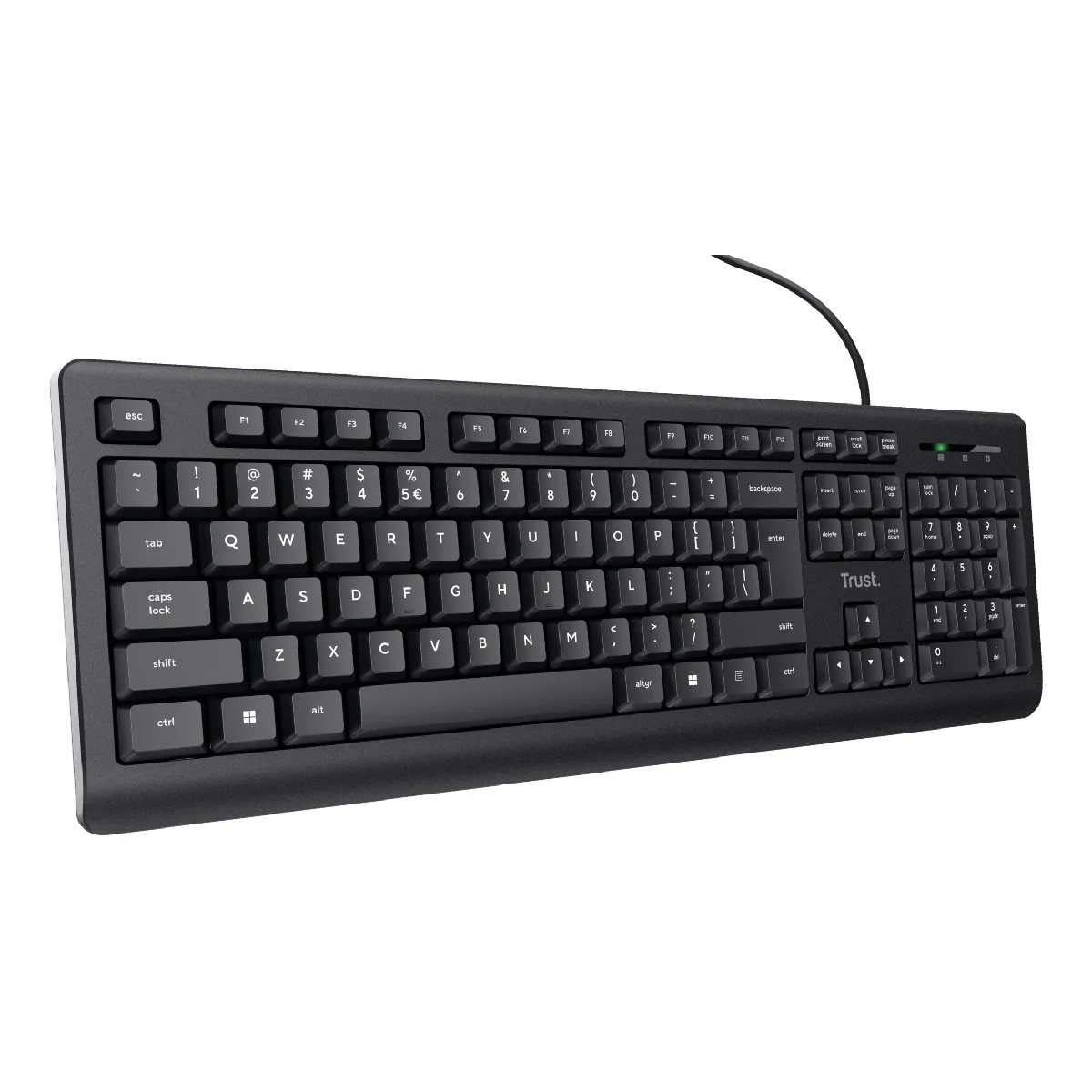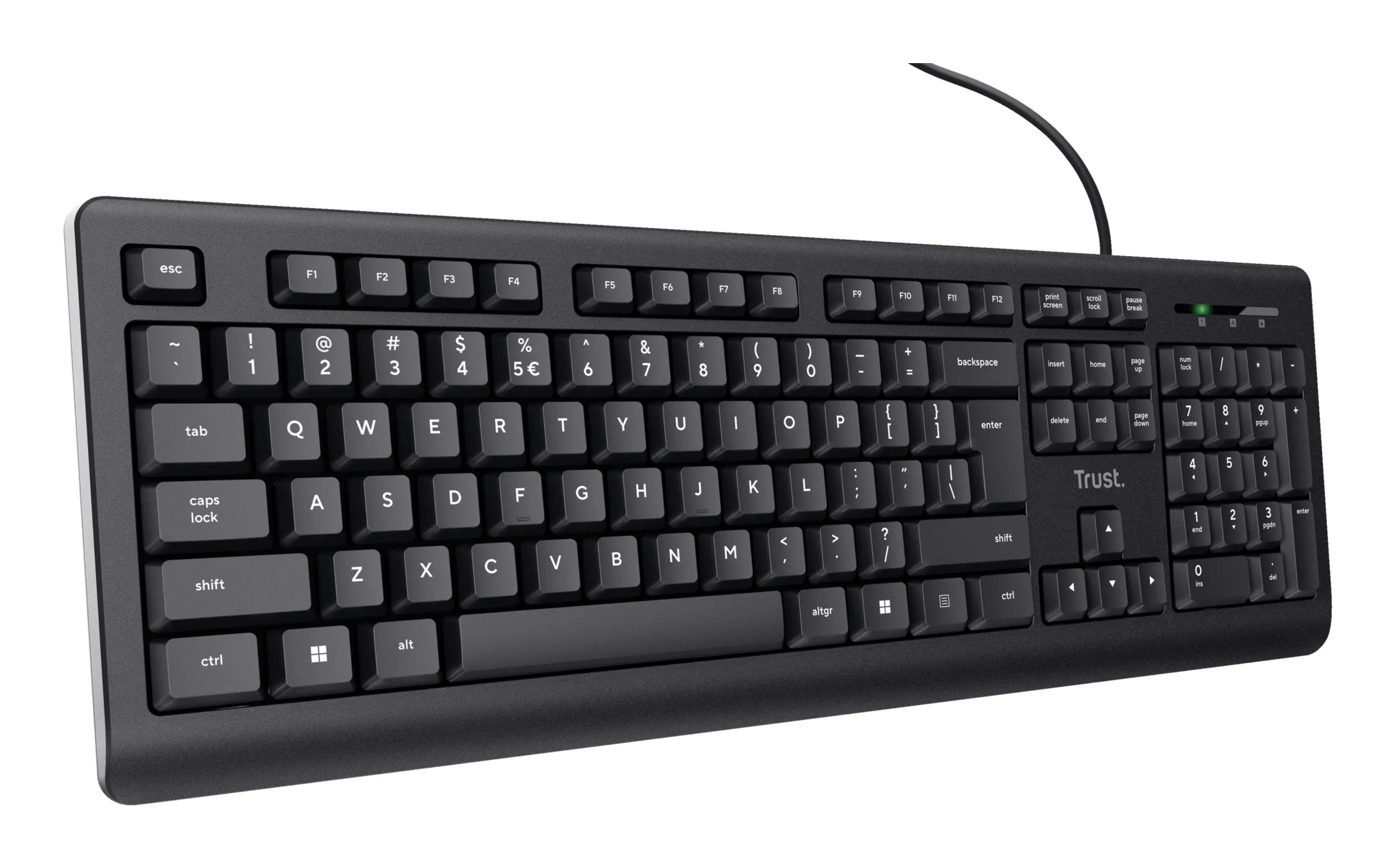 Le Trust Basics 24639 se destine à la bureautique avec des touches réactives et régulières. La résistance aux débordements apporte une tolérance supplémentaire face aux aléas, tout en restant facile à nettoyer. Le format complet limite les combinaisons de touches pour les chiffres et favorise une saisie plus rapide. La liaison filaire fiable en USB garantit une compatibilité large avec les appareils dotés d'un port USB standard.