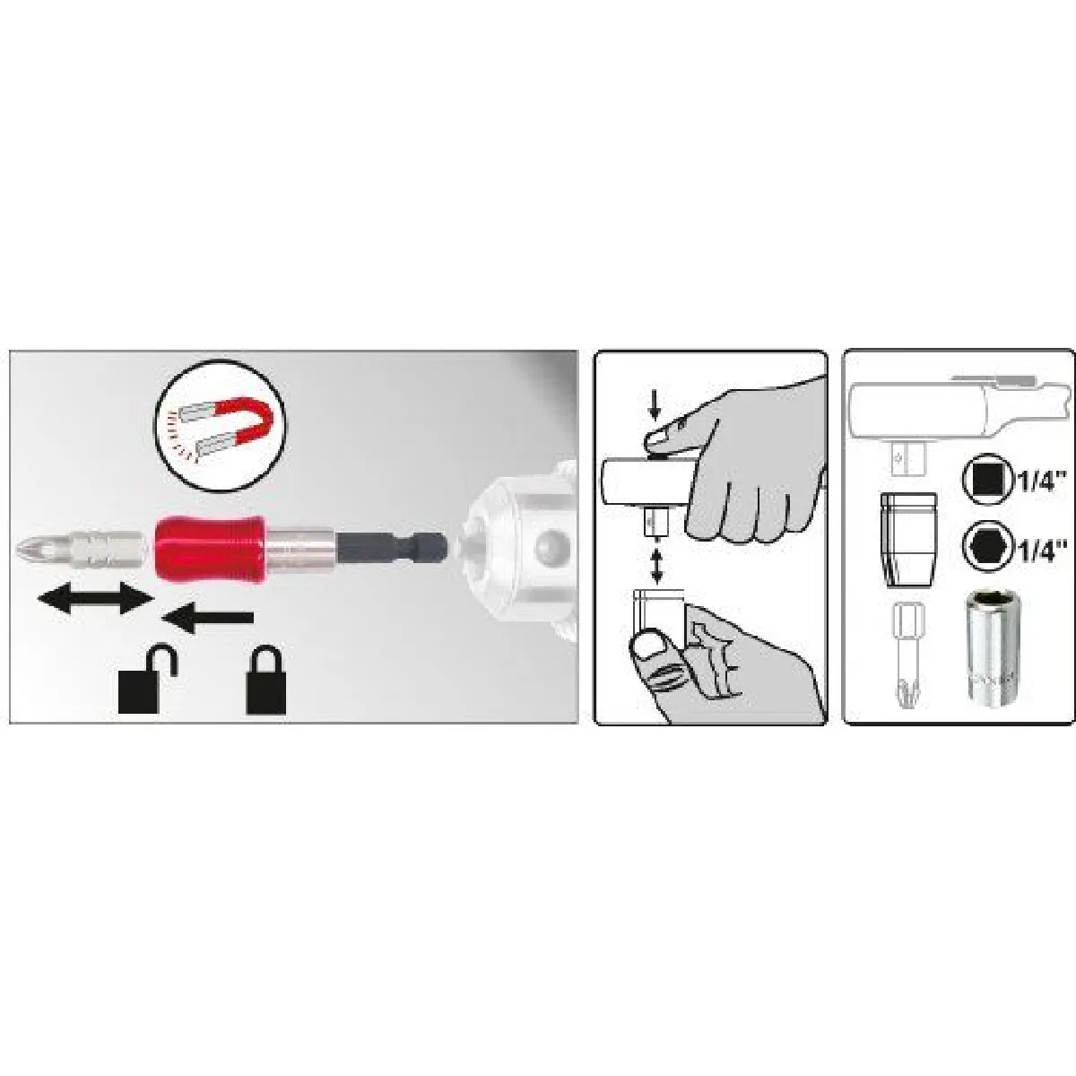 - Porte-embout breveté avec aimant puissant et changement rapide pour gagner du temps