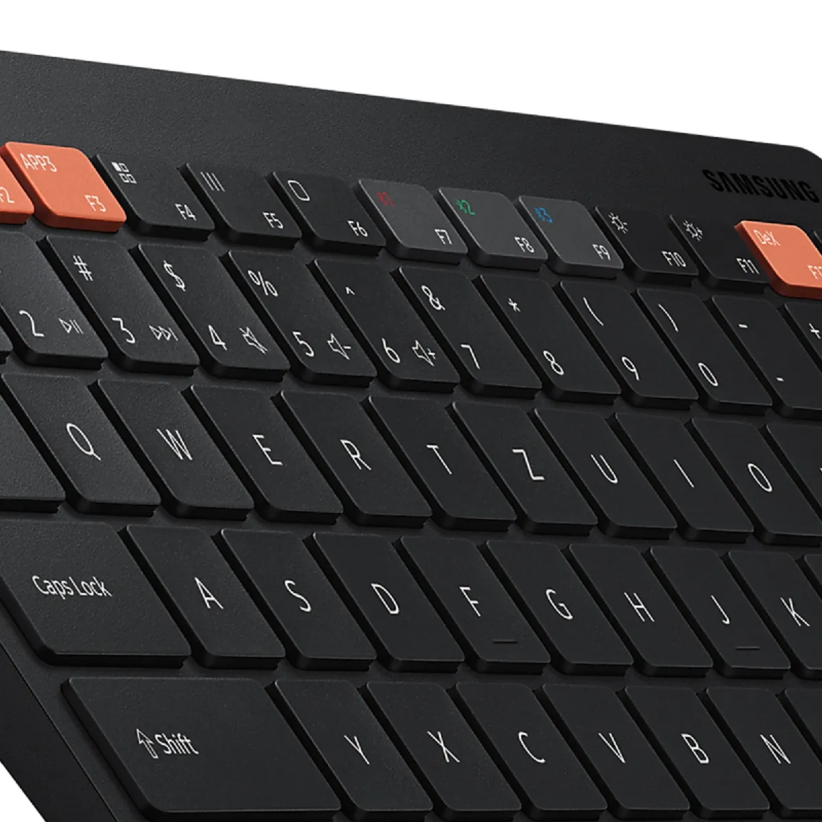 Clavier Sans Fil QWERTZ Noir original Samsung pour Ordinateur, Tablette et Smartphone. Permet l'enregistrement de 3 appareils. Bouton ON-OFF. Avec pile AAA (2 fournies). Raccourci HOT KEY. Mode DeX. Compact et Leger.