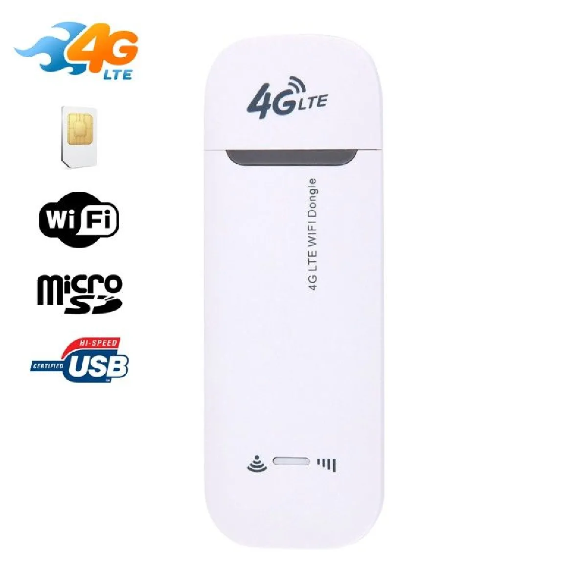 - 3 en 1 avec ses fonctions de clé USB 4G (carte SIM), clé Wifi sans fil et clé USB (carte micro SD)