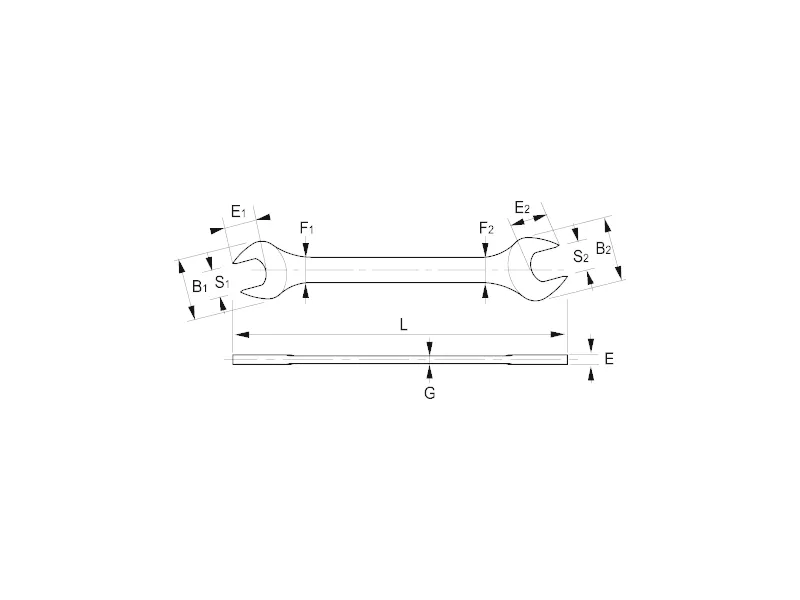 Avec une longueur de 166,5 mm, l'outil offre un bras de levier équilibré pour les interventions de maintenance. Les ouvertures S1 13 mm et S2 12 mm correspondent aux dimensions indiquées, avec des cotes complémentaires (B1 29,4 mm, B2 31,4 mm, E 6,1 mm) pour guider le choix selon l'espace de travail. Les mesures E1 13,6 mm et E2 15,3 mm, ainsi que F1 13,5 mm et F2 12,5 mm, aident à anticiper l'encombrement des fourches. Fourni en emballage individuel, cet outil Irimo répond aux besoins d'assemblage et de réglage où une prise stable et répétable est recherchée.