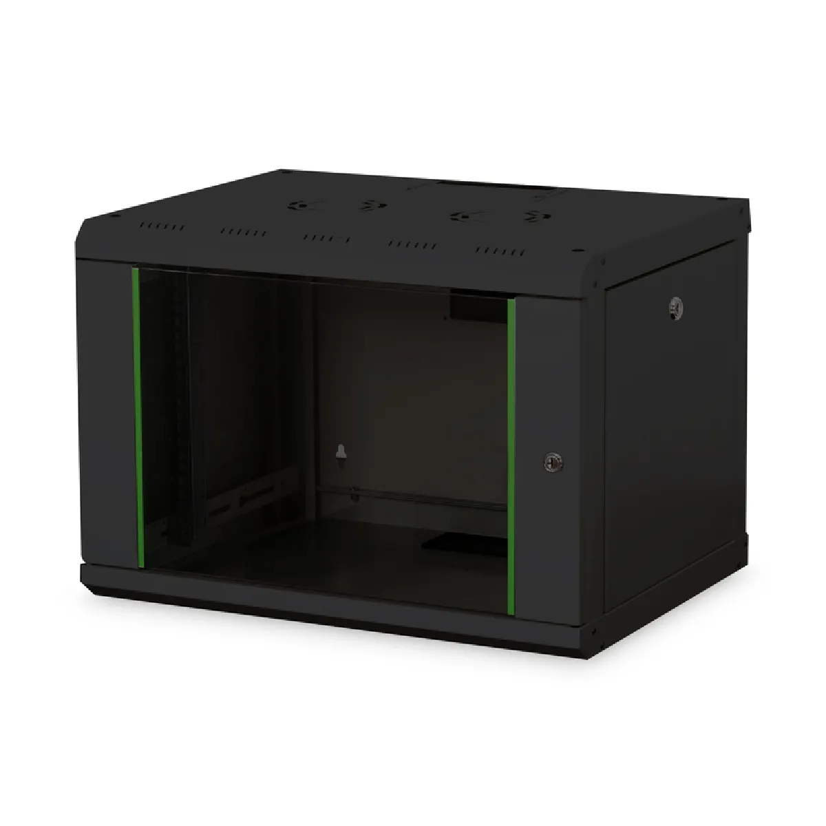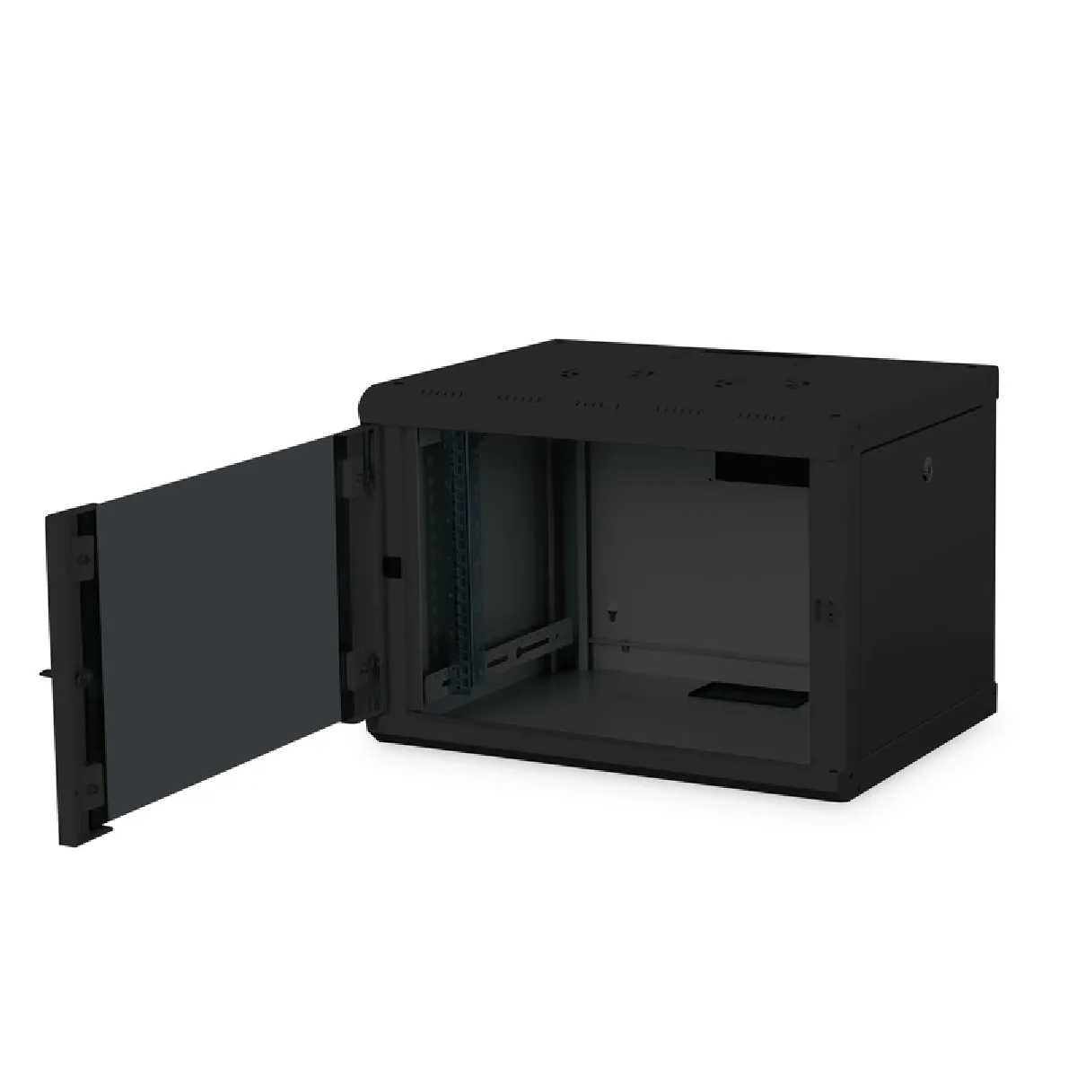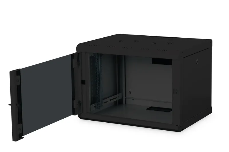 Avec son indice de protection IP20 pour une utilisation en intérieur, il convient aux locaux techniques et aux baies de proximité. La conception murale limite l'occupation au sol et simplifie l'intégration dans des espaces restreints. La finition noire s'intègre discrètement aux environnements professionnels, tandis que la construction en acier assure la durabilité et la stabilité nécessaires aux équipements réseau et télécoms.