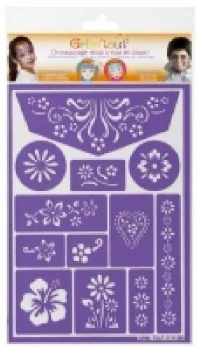 Le mode d'emploi détaillé et illustré guide étape par étape, utile pour réussir des contours fins dès la première utilisation. Les différents gabarits s'adaptent à plusieurs zones du visage, avec un grand motif pour le front et des éléments plus petits pour compléter la composition. La tenue de l'adhésif soutient l'application de couches légères ou plus couvrantes, selon l'intensité souhaitée. Conçu pour des ateliers créatifs, kermesses ou goûters d'enfants, ce pochoir aide à réaliser un maquillage floral régulier et soigné en un minimum d'étapes, tout en restant simple à retirer après la fête.