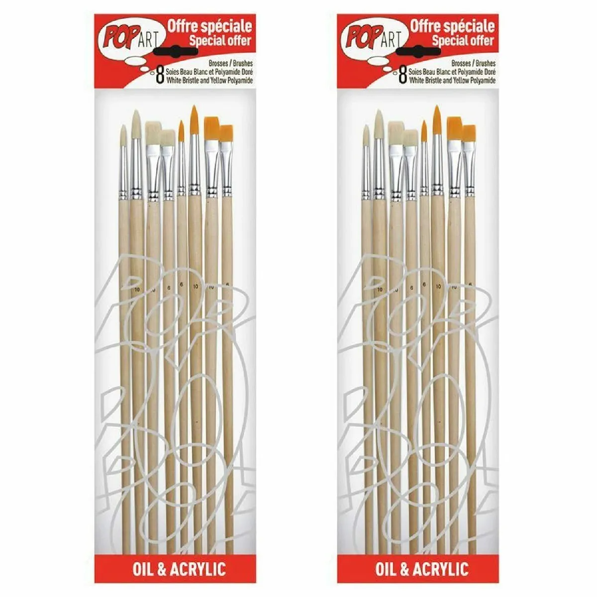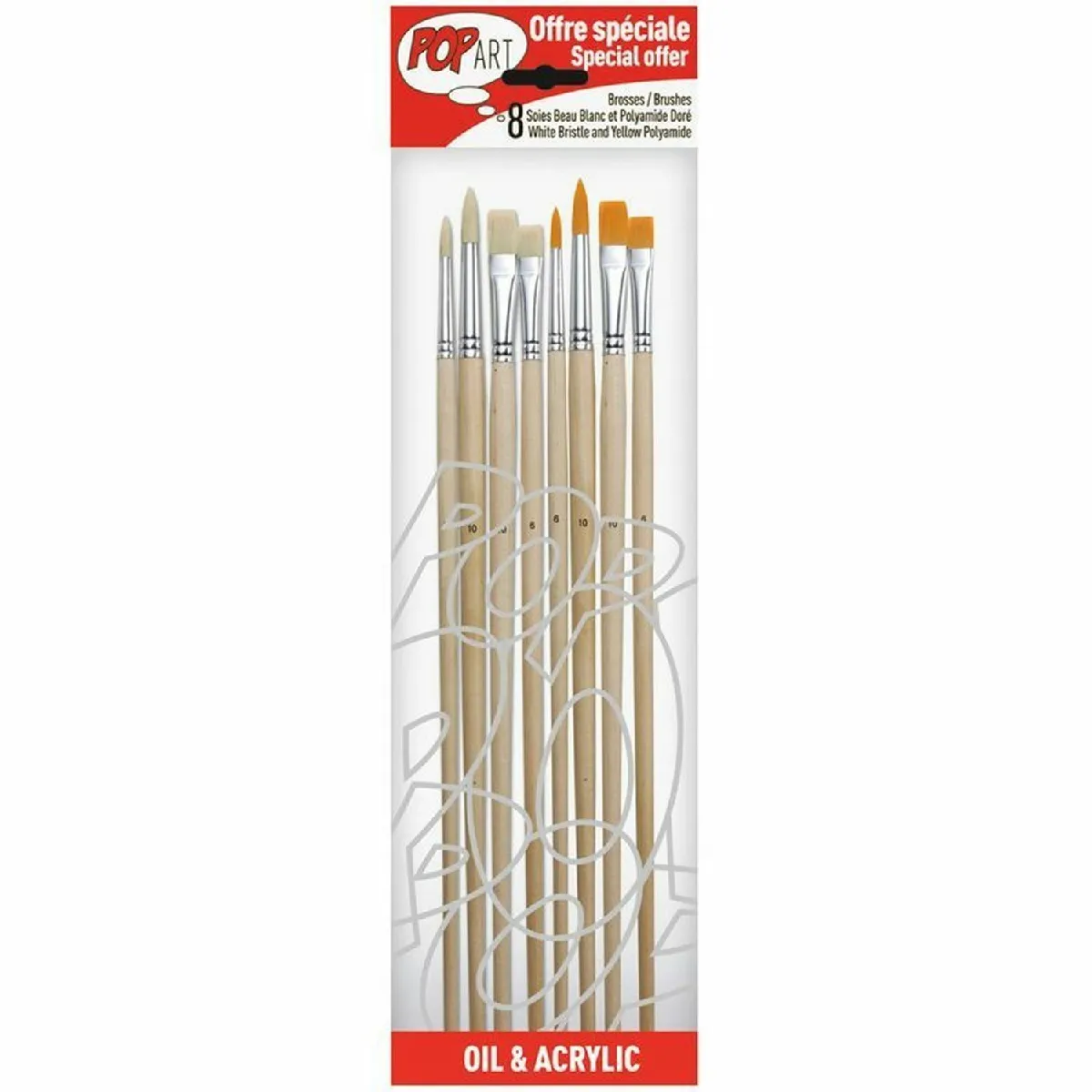 Ensemble de pinceaux - Polyamide et soie - Manches longs - Peinture acrylique et huile