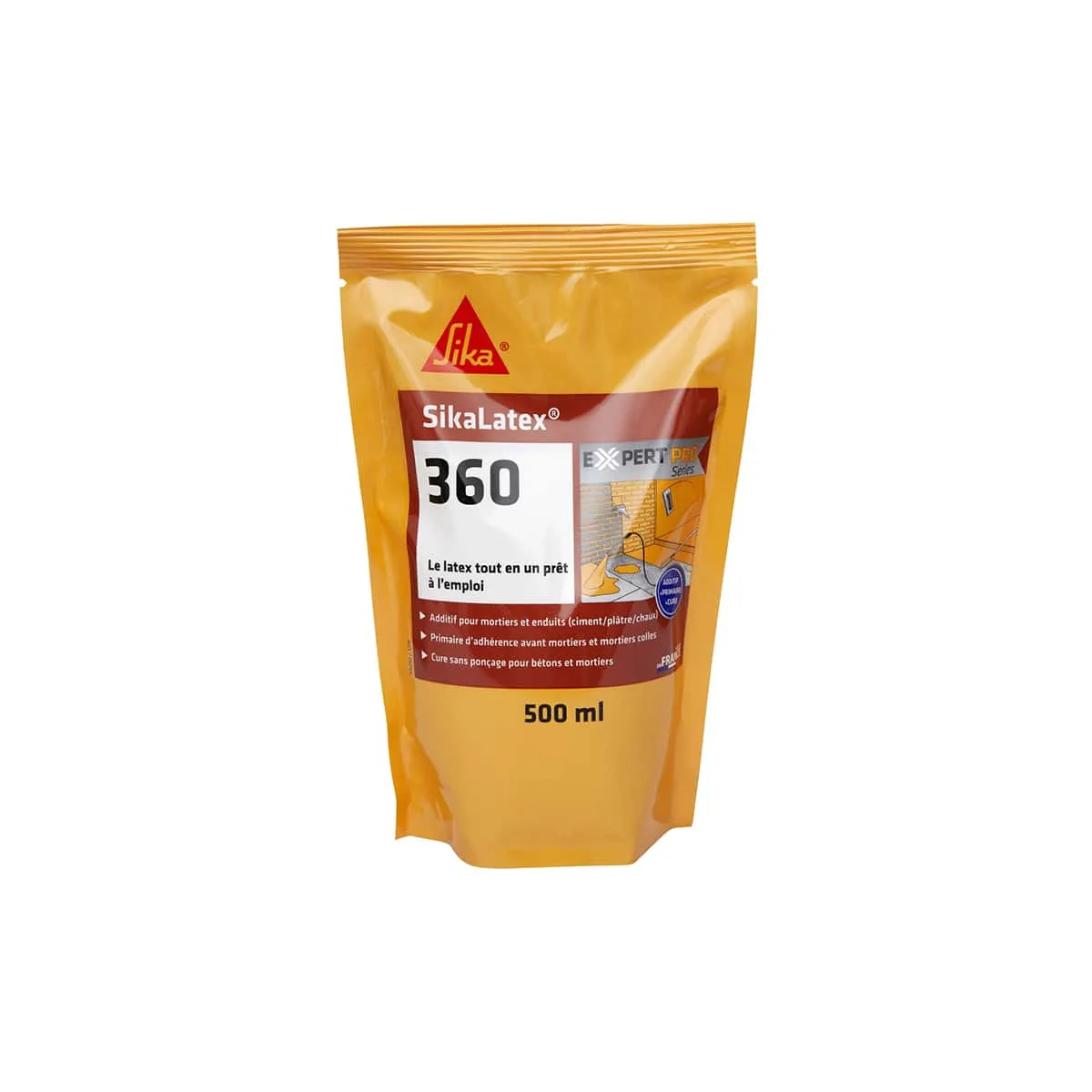 Présentation : Résine d'accrochage SIKA SikaLatex 360 - 500ml, améliore la mise en oeuvre, l'imperméabilisation, les résistances mécaniques et la dureté de surface. Elle réduit également l'usure, les poussières et le risque de faïençage.