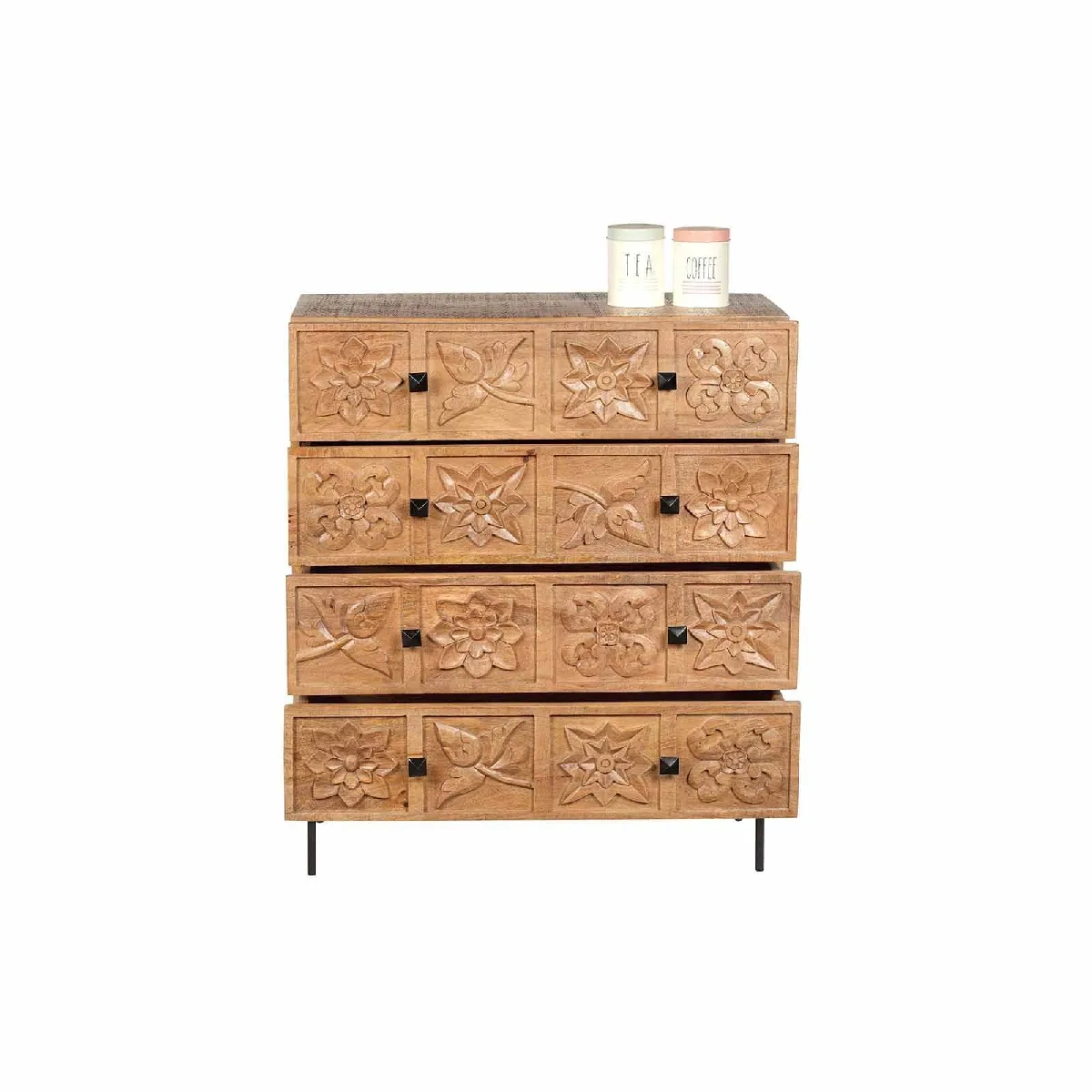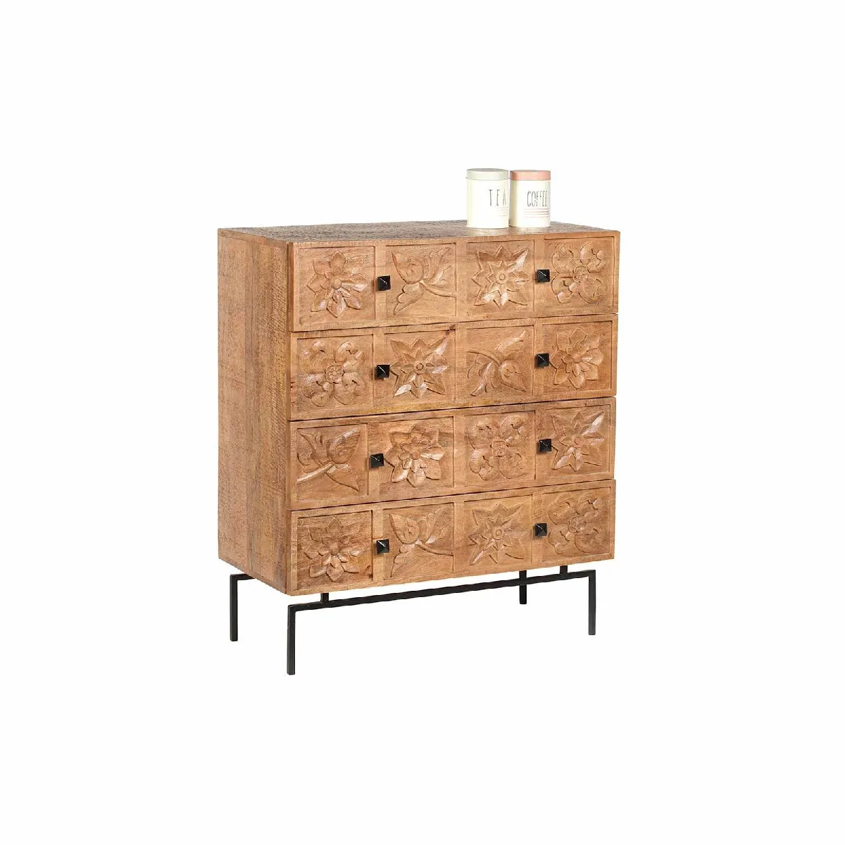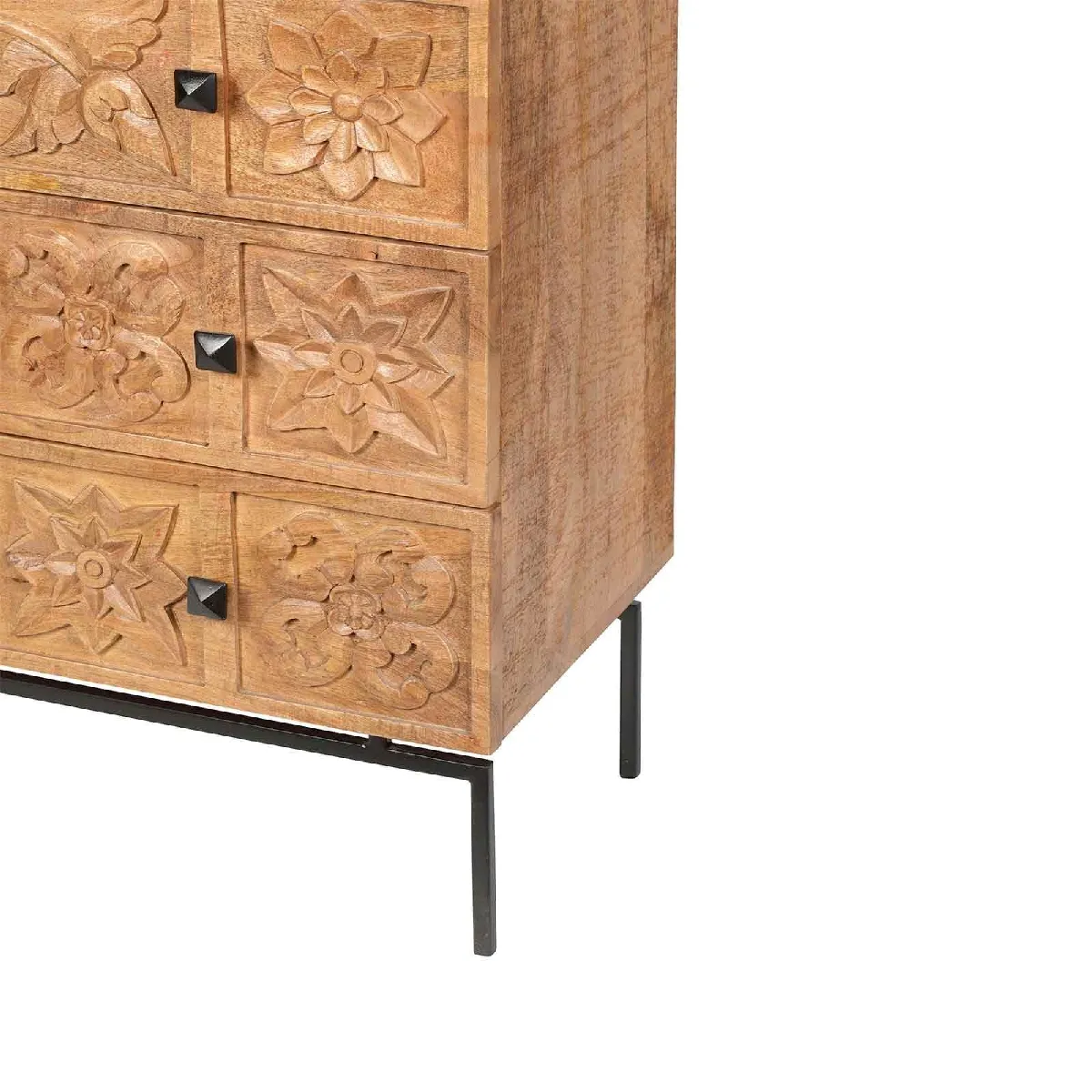 Commode manguier massif - Finition naturelle - Pieds métal noir - Sculpté main