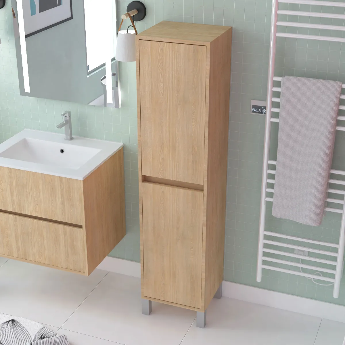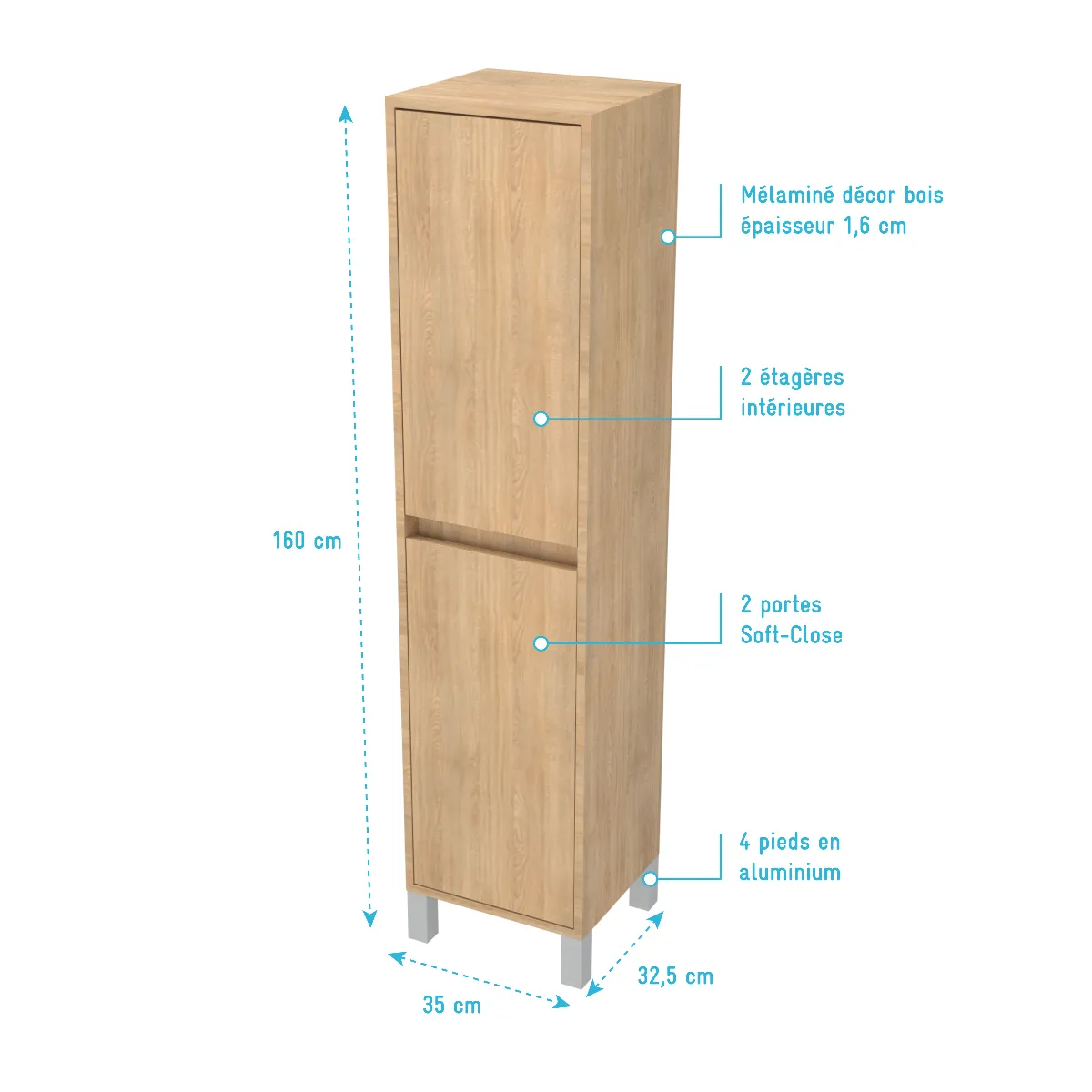 - Colonne en mélaminé finition chêne clair (Epaisseur 16 mm)