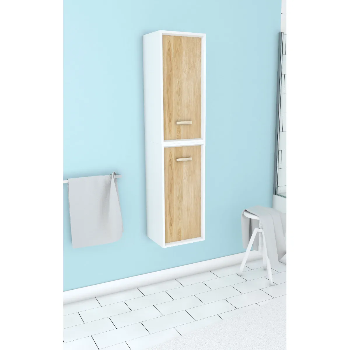 Colonne salle de bain - MDF laqué - 2 portes - 150 x 35 x 25 cm - Structure suspendue
