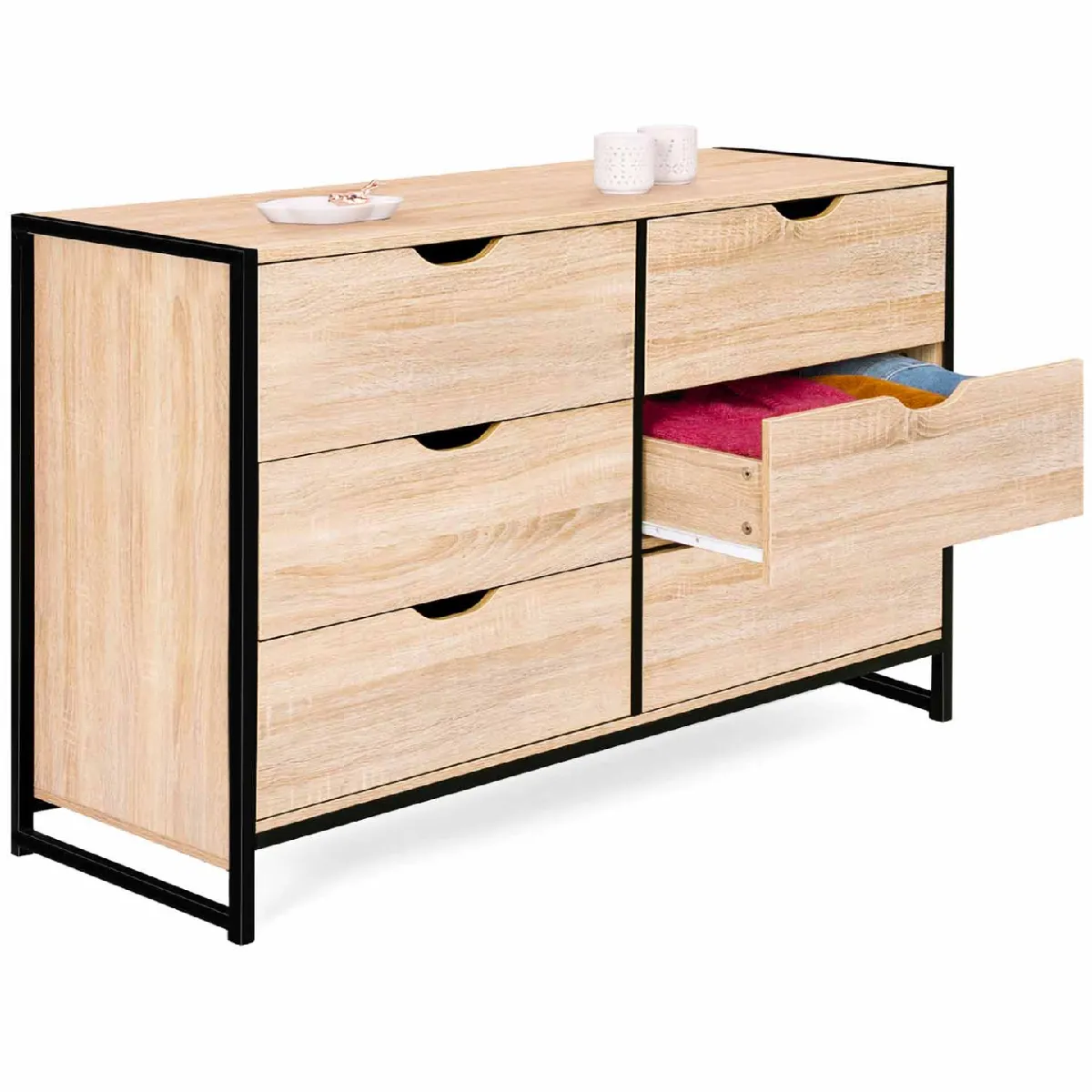 Commode 6 tiroirs - Design industriel - Bi-matière - Larges tiroirs 61,5 cm