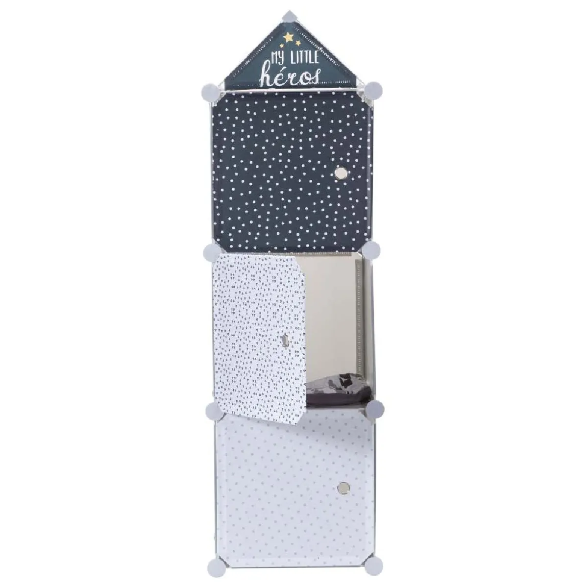 Commentaire vendeur : Informations Techniques : Dimensions : L. 34 x l. 32 x H. 110 cm Matière : Plastique Spécificités : Pratique & Utile Lot de 3 Cubes Modulables Rangement Chambre Garçon Livré avec notice de montage Fermeture Aimantée Facile d'utilisation Couleur : Gris