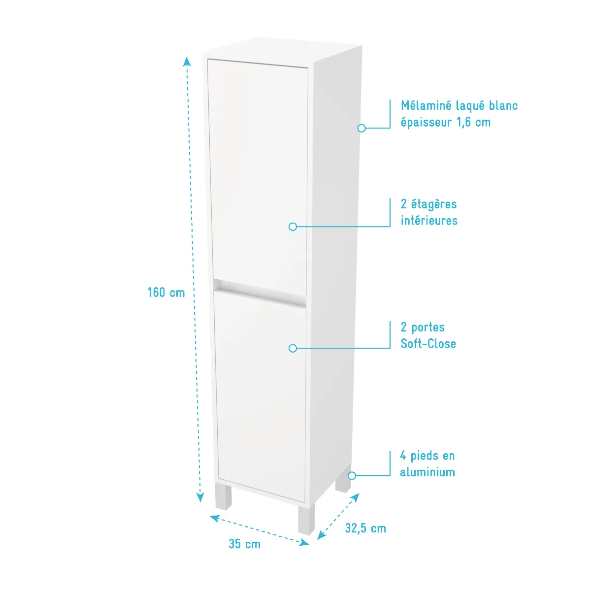 - Colonne en mélaminé finition blanc laqué (Epaisseur 16 mm)