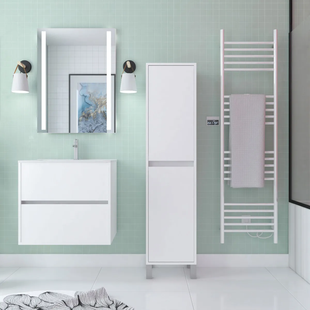 Dotée de 4 compartiments de rangement, cette colonne est idéale pour ranger vos produits, serviettes ou autres... Vous ne pourrez plus vous en passer !