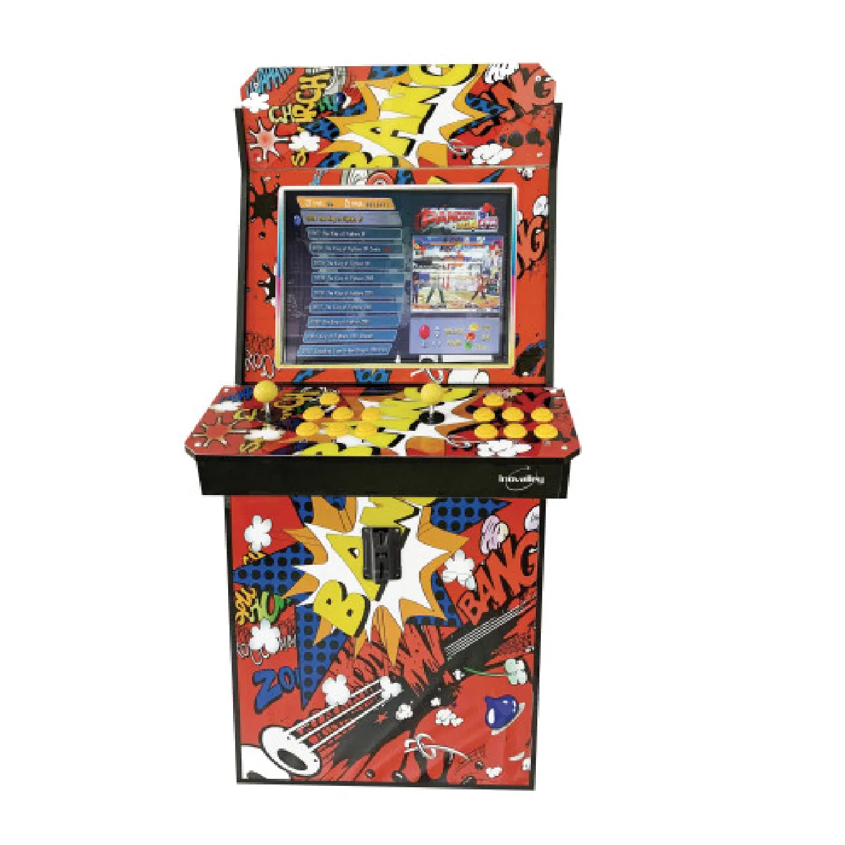 Le format XXL crée une présence marquée dans une salle de jeux et facilite le jeu debout à deux. L'écran LCD couleur de 48 cm offre une surface d'affichage confortable pour redécouvrir des titres d'arcade, tandis que les commandes physiques et l'interface simple privilégient l'accès rapide aux contenus. Avec plus de 1600 jeux préinstallés, la variété couvre de nombreux genres pour alterner parties rapides et défis plus longs. Le châssis de grande hauteur contribue à une position de jeu stable et naturelle, et les hautparleurs 2 x 20 W assurent une restitution sonore énergique adaptée aux ambiances rétro.