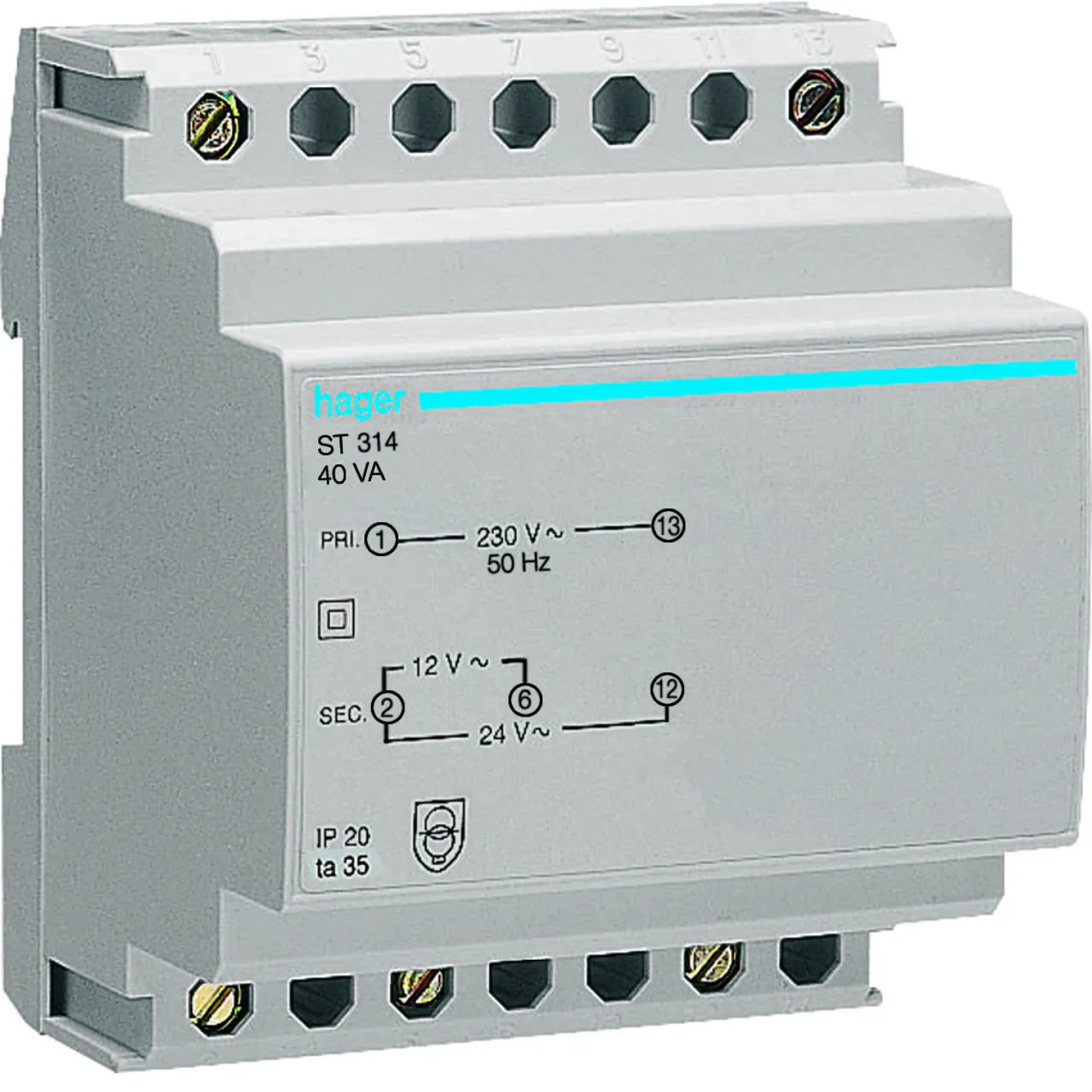 Hager Transformateur de sécurité 230/12-24 V ST314