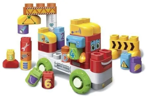Les tout-petits enrichissent leur motricité avec 30 blocs illustrés et colorés à empiler et connecter sur le thème du chantier. La base électronique parlante reconnaît les blocs interactifs et déclenche voix et sons pour guider l'enfant dans ses constructions. Les activités encouragent l'apprentissage des couleurs, des chiffres et des outils, tout en développant coordination et logique. La structure en bois de couleur jaune offre une prise en main agréable et durable pour les manipulations quotidiennes.