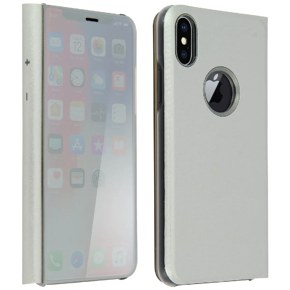 Avizar iPhone X/XS - Housse Clapet Miroir Argenté